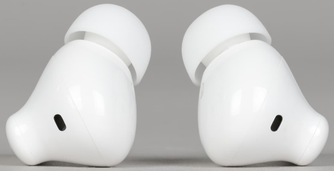 Производитель анонсировал «улучшенное качество звука при разговорах» благодаря работе массива из четырех микрофонов с системой шумоподавления. Однако выше мы уже отмечали, что основные микрофоны для голосовой связи размещены довольно спорно: на внешней стороне ножек, да еще и на значительном расстоянии от их торцов. Посмотрим, как эта схема проявит себя на практике.