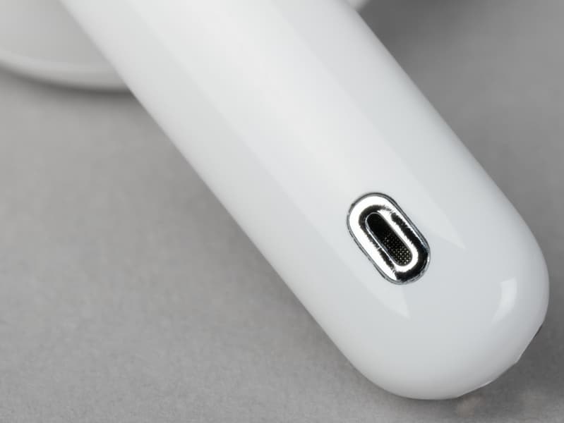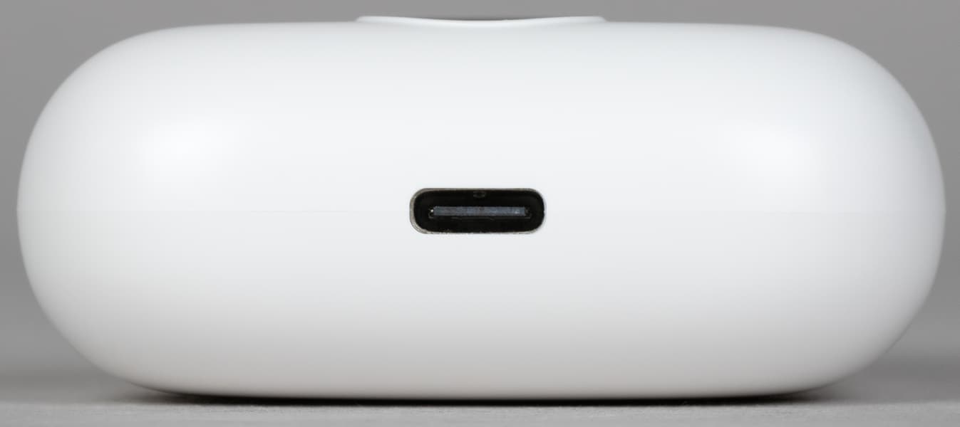 На дне футляра расположен порт USB Type-C для зарядки. Все штекеры, которые оказались под рукой во время тестирования, вставлялись в него не до конца, но плотно и с характерным кликом.