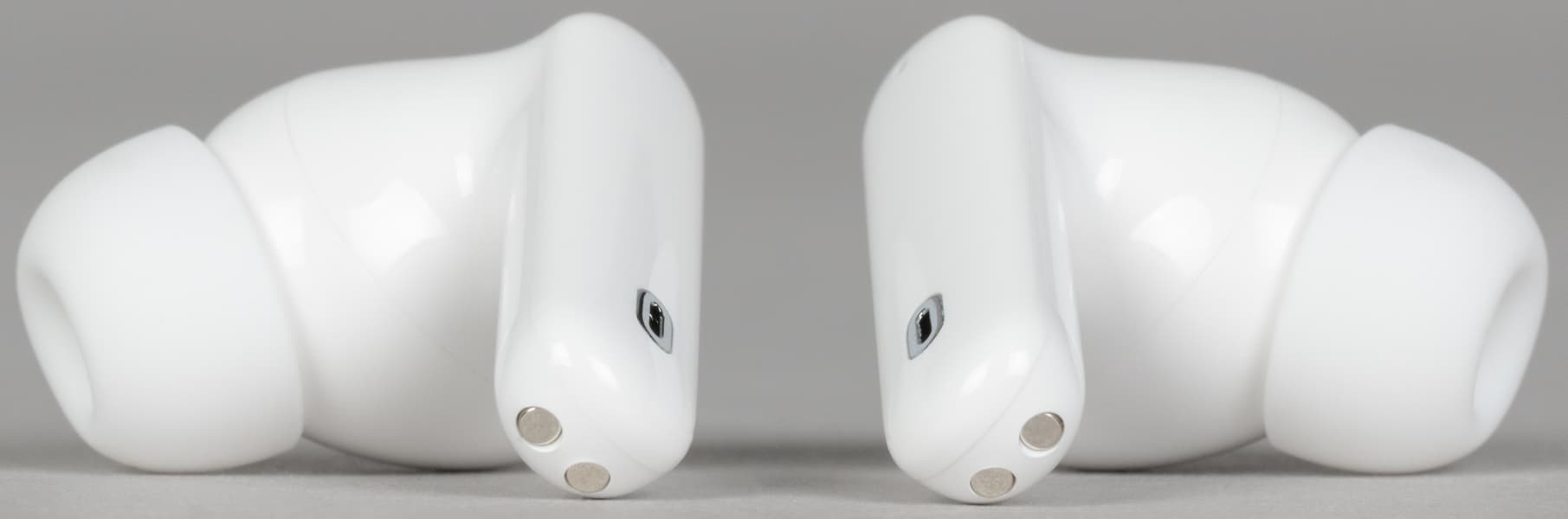 Возле слотов находятся едва заметные обозначения «правый-левый», внутри виднеются подпружиненные контакты для зарядки — размещены они довольно глубоко, очистить их в случае необходимости будет сложновато.