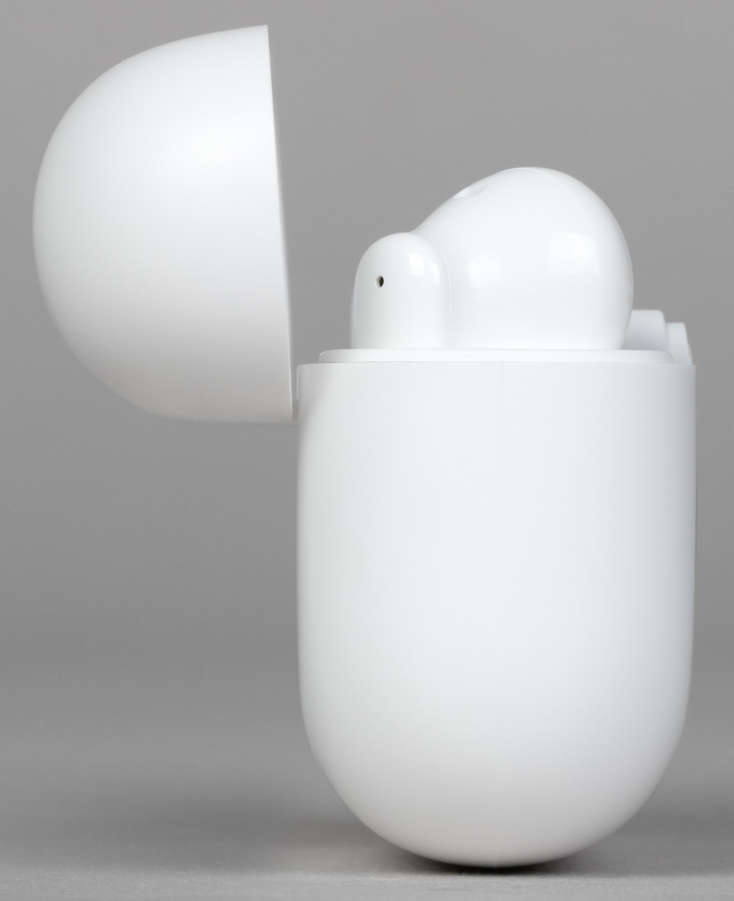 Наушники прочно удерживаются в своих слотах магнитными креплениями, но при этом легко вынимаются — достаточно чуть подтолкнуть округлую часть по направлению от крышки к себе, как наушник приподнимается в своем слоте ровно настолько, чтобы его было удобно обхватить пальцами и вынуть.