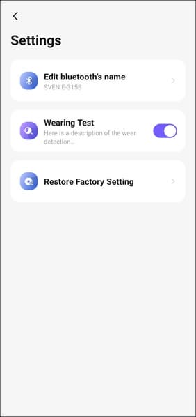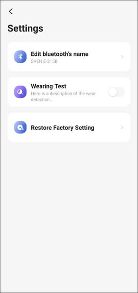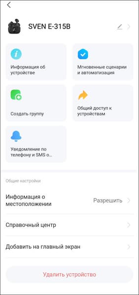 Для настройки Sven E-310B/E-315B используется знакомое многим универсальное приложение для умного дома — Smart Life (Tuya), доступное для Android и iOS. Создатели гарнитуры решили не изобретать велосипед, а воспользоваться готовым и проверенным решением — и это, безусловно, правильный шаг. Такой подход позволил сразу реализовать пусть и не идеальную, но вполне рабочую систему. Впрочем, пространство для улучшений еще очень велико. Начать можно хотя бы с перевода на русский язык: само приложение давно локализовано, а вот интерфейс на странице наушников пока полностью на английском. Голосовые сообщения от гарнитуры, к слову, тоже озвучены исключительно на английском.