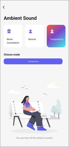 Система шумоподавления работает на уровне, характерном для бюджетных моделей: не идеал, но пользоваться можно и нужно — с «шумодавом» определенно комфортнее, чем без него. От гула метро он не спасет, но позволит не выкручивать громкость на максимум. Зато в условиях городской прогулки вдоль оживленной магистрали или в шумном кафе разница ощущается сразу — становится заметно тише и спокойнее. Отдельный плюс — возможность вручную настроить степень подавления. Это помогает избежать знакомого многим эффекта «давления в голове», который, может проявляться даже при не самой агрессивной работе системы.