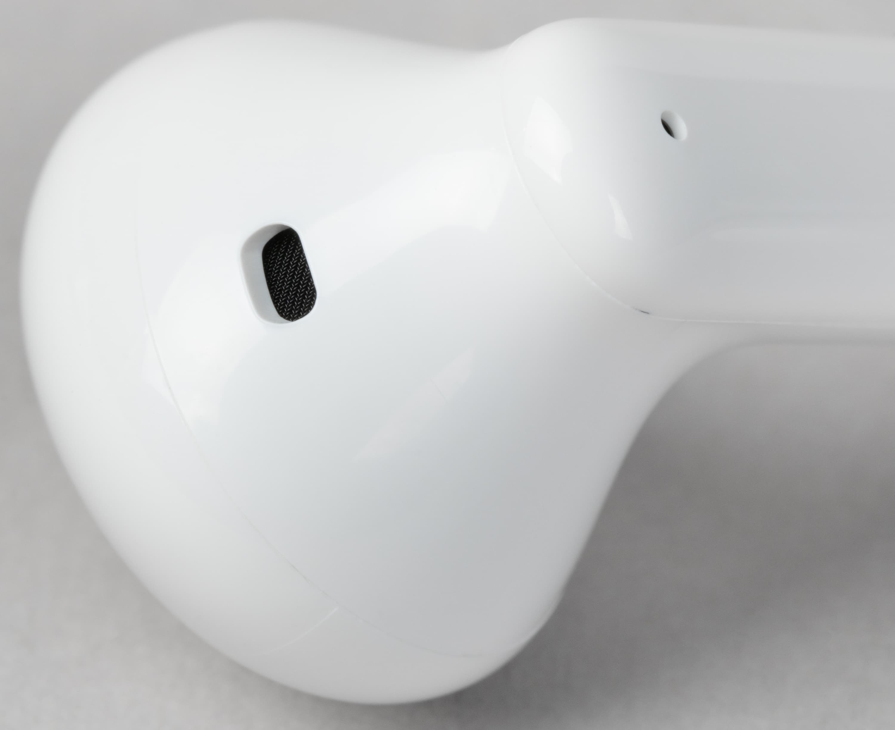 Корпус изготовлен из глянцевого пластика. Он быстрее покрывается отпечатками, зато обеспечивает лучшее сцепление с кожей ушного канала, а значит — более надежную посадку.