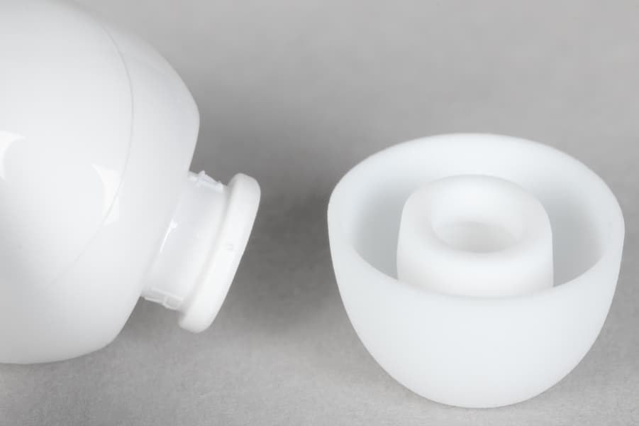 Силиконовые насадки удерживаются за счет крупного выступа по периметру звуковода. Держатся они достаточно надежно, при этом снимаются и надеваются без особых усилий.