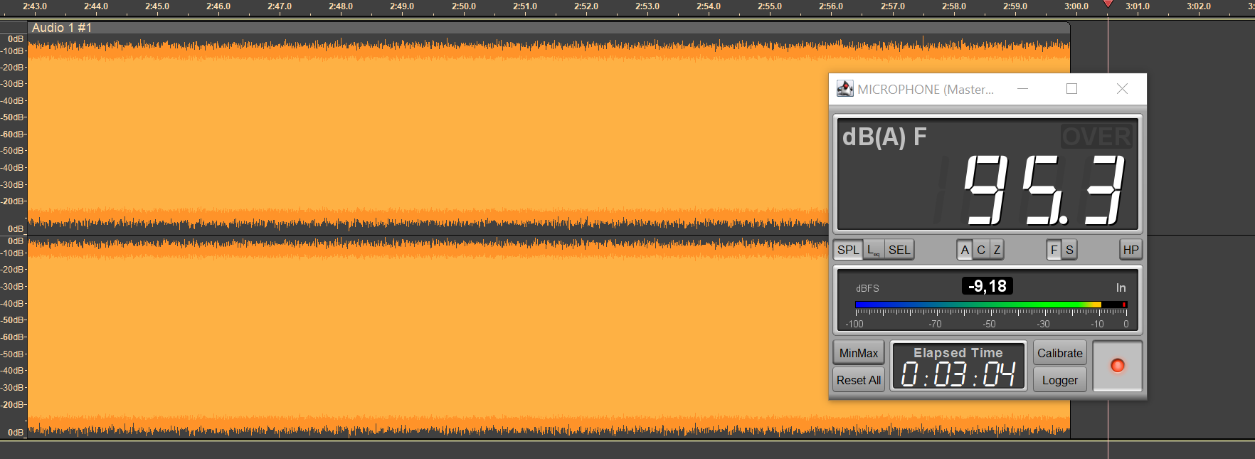 Осталось посмотреть, как справится со своей задачей шумоподавление. Для этого снова запишем пару треков, но добавим фоновый шум: включим в расположенной недалеко от места записи акустике звук оживленной улицы и посмотрим, как это отразится на разборчивости речи.
