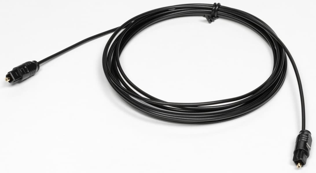 Оптический кабель неожиданно длинный — целых 3 метра, которых явно с запасом хватит даже при подключении активной колонки к какому-нибудь плееру или игровой приставке, размещенной в стойке под ТВ, например.