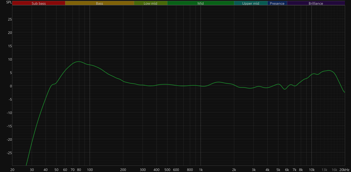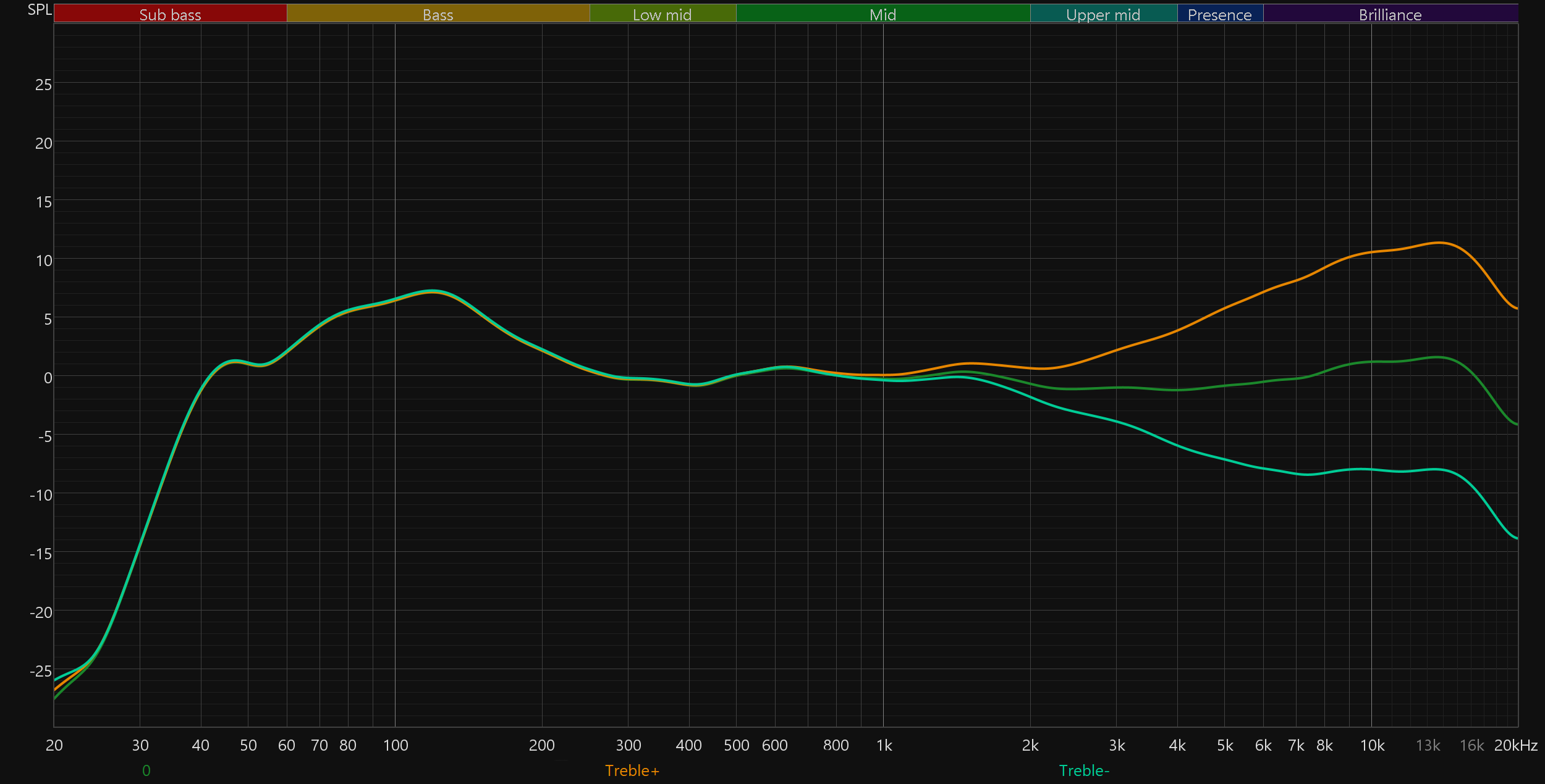 Выраженный подъем в районе 13 кГц создает ощущение «воздушности», но на некоторых записях приводит к излишне резкому звучанию. Так, например в треке Diana Krall — The Look of Love акценты на ВЧ дают ощущение пространства и легкости, воспринимаясь очень органично. А вот в Imagine Dragons — Believer агрессивные высокие в перкуссии делают звук избыточно резким, особенно при прослушивании на громкости выше средней.