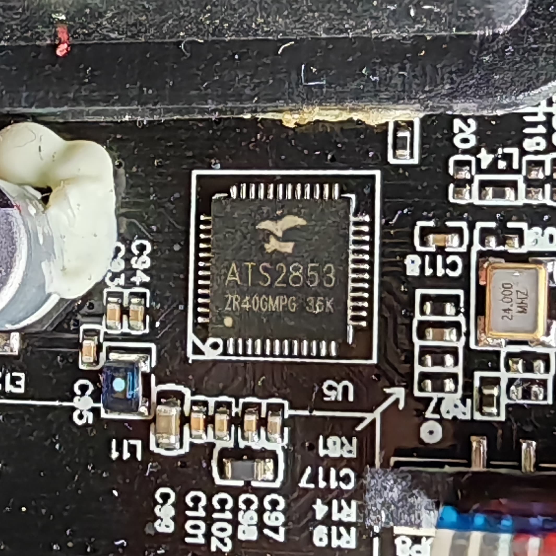 За обработку сигналов и коммутацию источников отвечает мультимедийный SoC ATS2853 (Actions Semiconductor). Теоретически он способен обеспечить полную работу акустики — в чип интегрированы Bluetooth и ЦАП, однако реализованы они на «самом базовом» уровне. Поэтому в данном устройстве для Bluetooth используется отдельный специализированный модуль, а роль ЦАПа выполняет интегрированный в усилитель чип Burr-Brown.