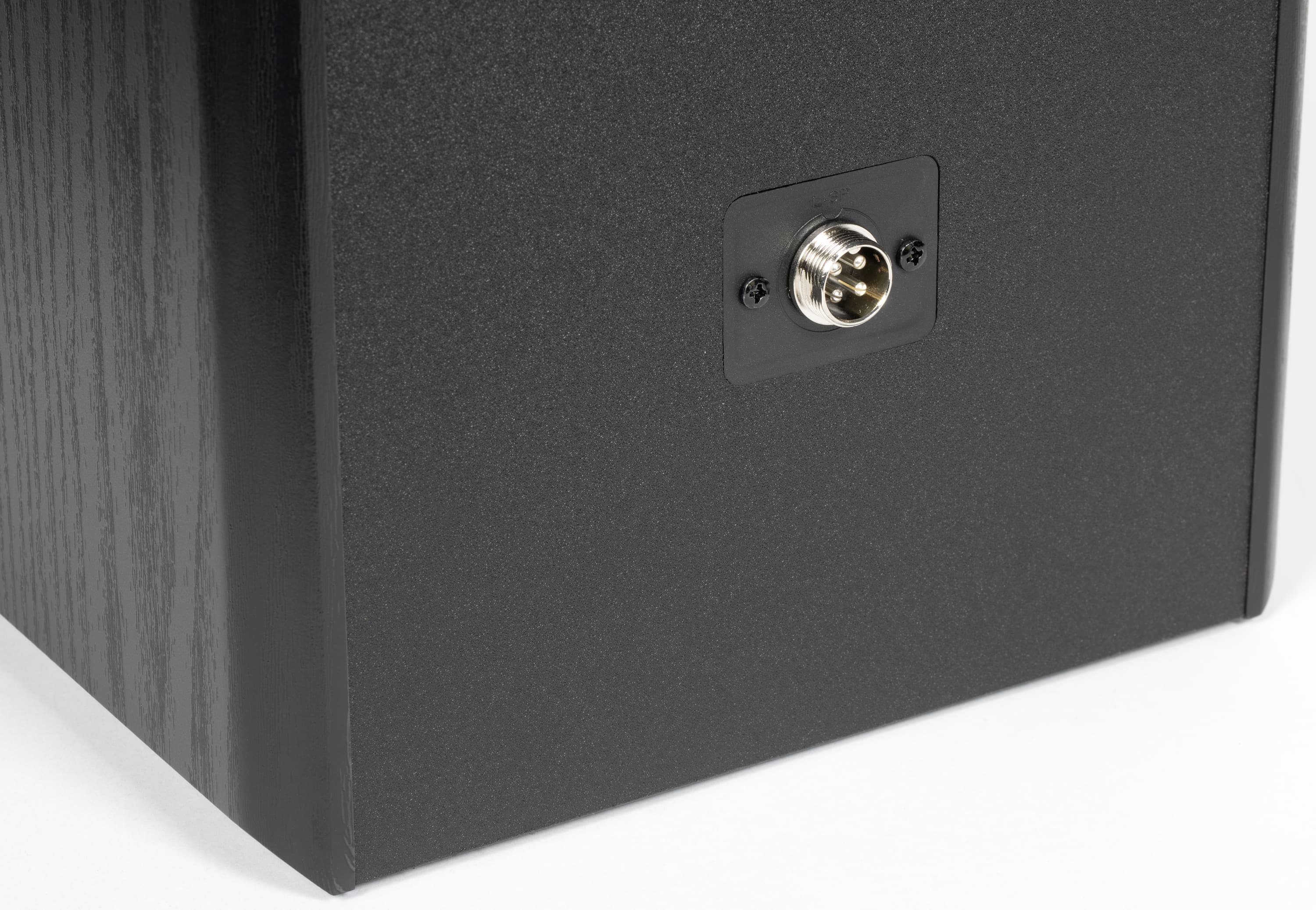 Для подключения активной колонки к пассивной предусмотрен комплектный кабель, о котором мы говорили выше. Форма коннектора исключает ошибочное подключение, так что здесь всё максимально просто — подключаем, для большей надежности фиксируем с помощью кольца с резьбой.