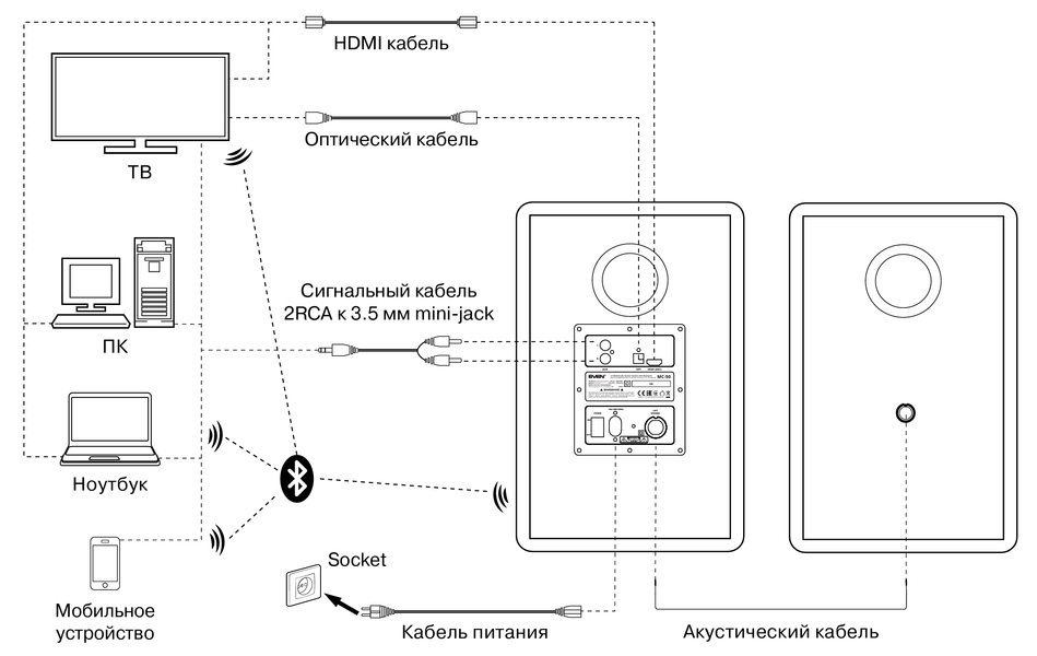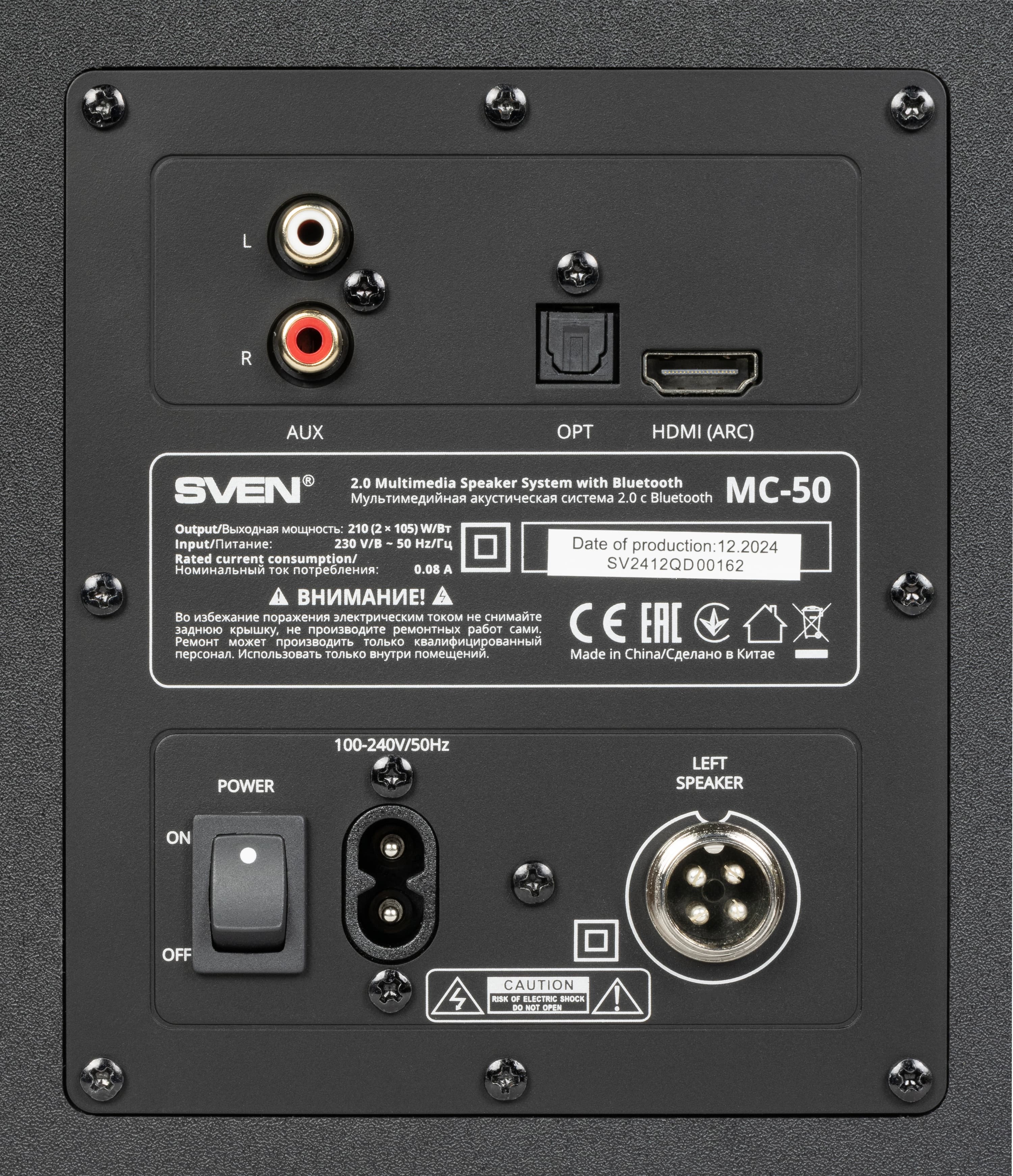 Sven MC-50 наглядно демонстрирует, какой может быть сравнительно доступная акустика без лишних компромиссов. Дизайн строгий и при этом приятный, наклонная передняя панель справляется со своей задачей — направляет звук в сторону головы слушателя при настольном размещении. Четыре варианта подключения позволяют использовать акустику как в роли настольной, так и в составе домашнего кинотеатра.