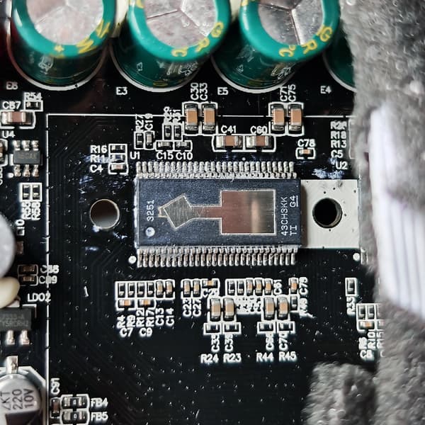 В качестве усилителей используются TAS3251 с цифровой обработкой сигнала (DSP). Это довольно продвинутое решение Texas Instruments класса D, оснащенное ЦАП Burr-Brown. В стереорежиме TAS3251 способен выдавать до 2×175 Вт на нагрузку 4 Ом или до 2×220 Вт на 3 Ом, а в монорежиме — до 350 Вт.