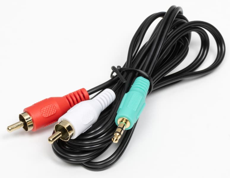 - аудиокабель 2×RCA — миниджек 3,5 мм