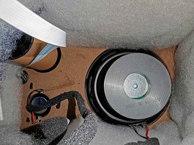 Пористым материалом также покрыты кабели, проложенные внутри корпуса. К сборке претензий нет — всё по фэншую. Судя по маркировке на твитере, он тоже сделан специально для конкретных моделей Sven. Его импеданс — 6 Ом.