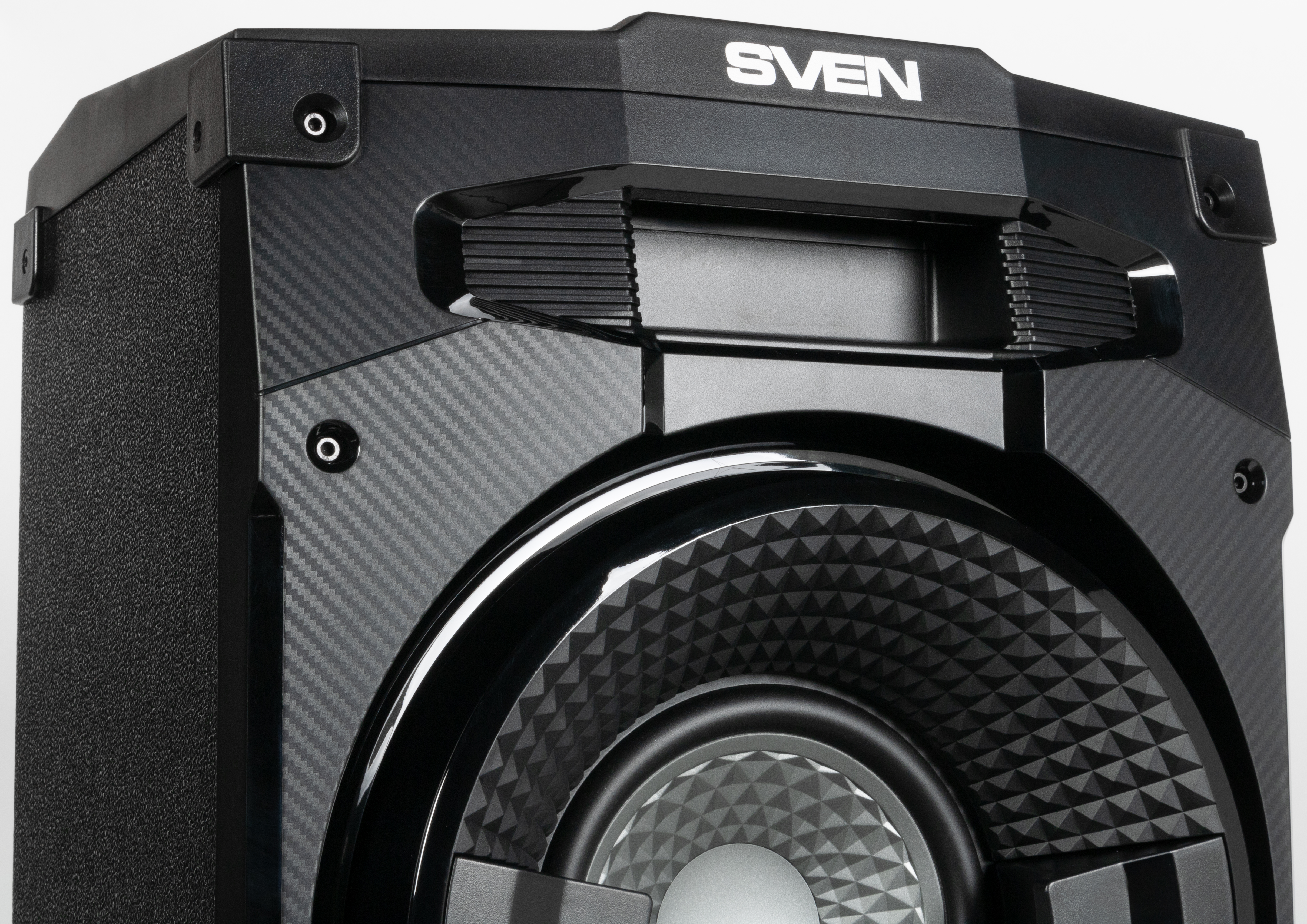 Компания Sven уверенно движется по пути увеличения габаритов и мощности своей акустики для вечеринок. Когда-то всё начиналось с традиционных Bluetooth-колонок, потом мы увидели, как они «подросли» до устройств, которые мы условно называем «бумбоксами»: их легко можно было представить на плече у пользователя, они комплектовались ремнями для переноски и в целом еще могли называться портативными. Следующий этап — «патибоксы»: громкие, оснащенные яркой подсветкой, но всё еще способные работать автономно от встроенного аккумулятора. Их место уже не на плече пользователя, а где-нибудь в багажнике автомобиля, например.