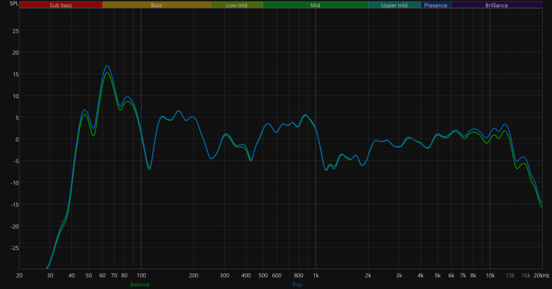 Традиционно проиллюстрируем сказанное выше с помощью графика АЧХ, полученного при подключении посредством Bluetooth и размещении микрофона в метре от поставленной вертикально колонки.