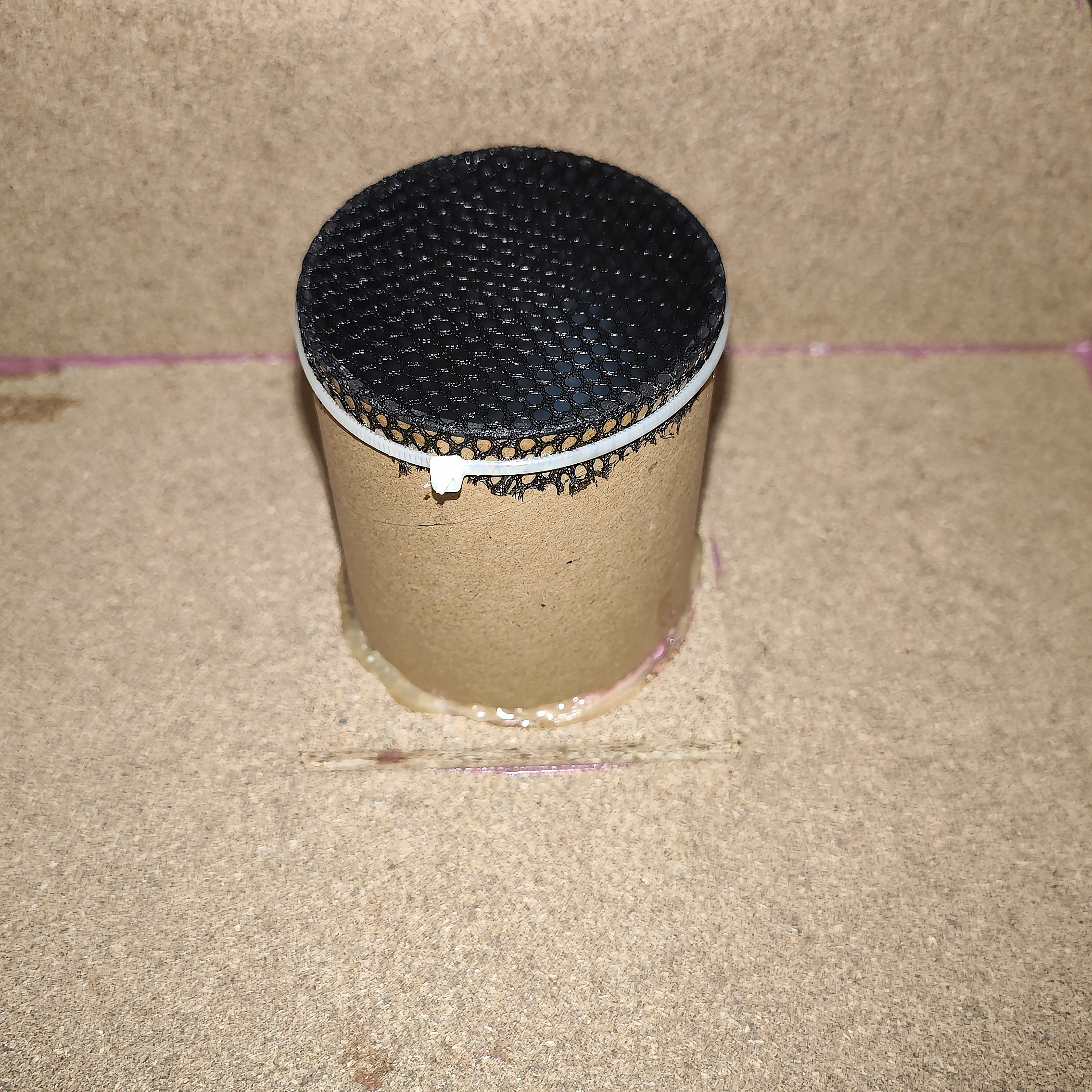 Диаметр отверстий фазоинверторов — 70 мм, изнутри они закрыты тканевой сеткой, предотвращающей попадание посторонних предметов внутрь корпуса.