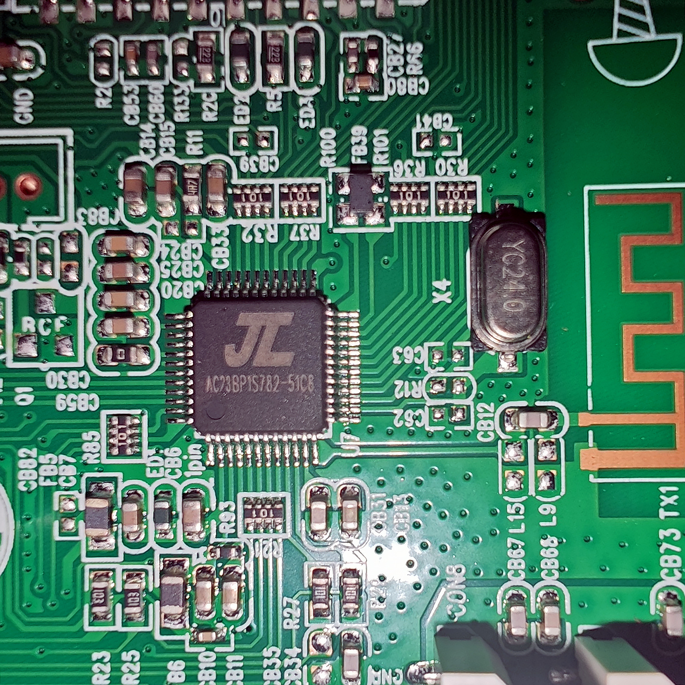 За поддержку Bluetooth отвечает модуль АС23BP, рядом с которым размещена антенна, выполненная в виде дорожки на плате. Обработкой звука занимается Pulsus PS9860, найти для нее актуальный даташит не удалось.