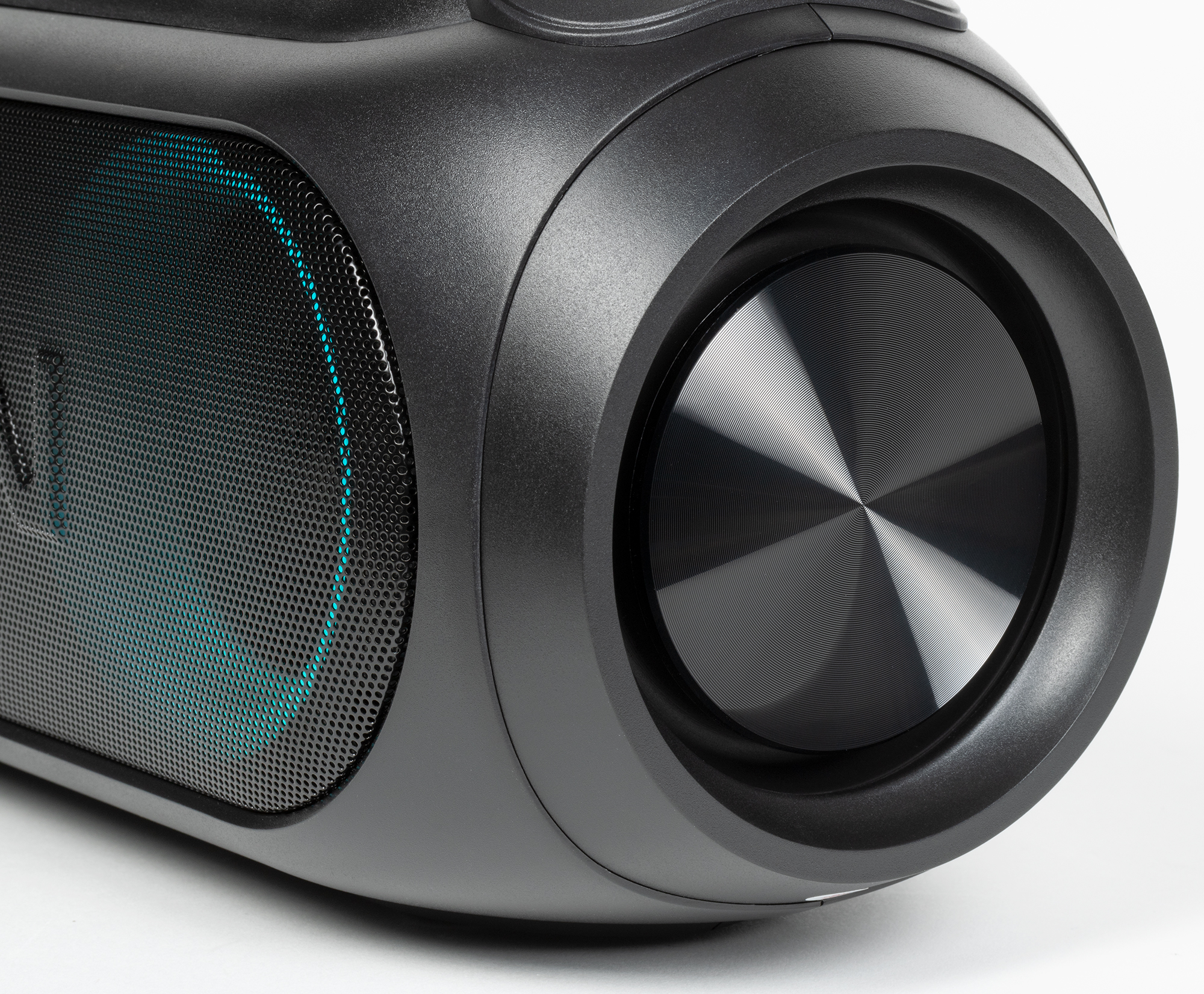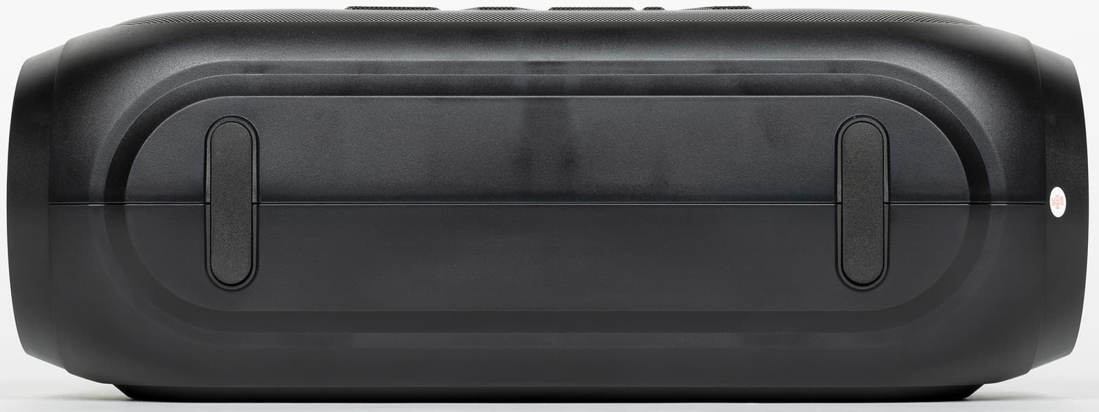 В торцах корпуса размещены пассивные излучатели, цель которых — расширить возможности колонки по воспроизведению низкочастотного диапазона.