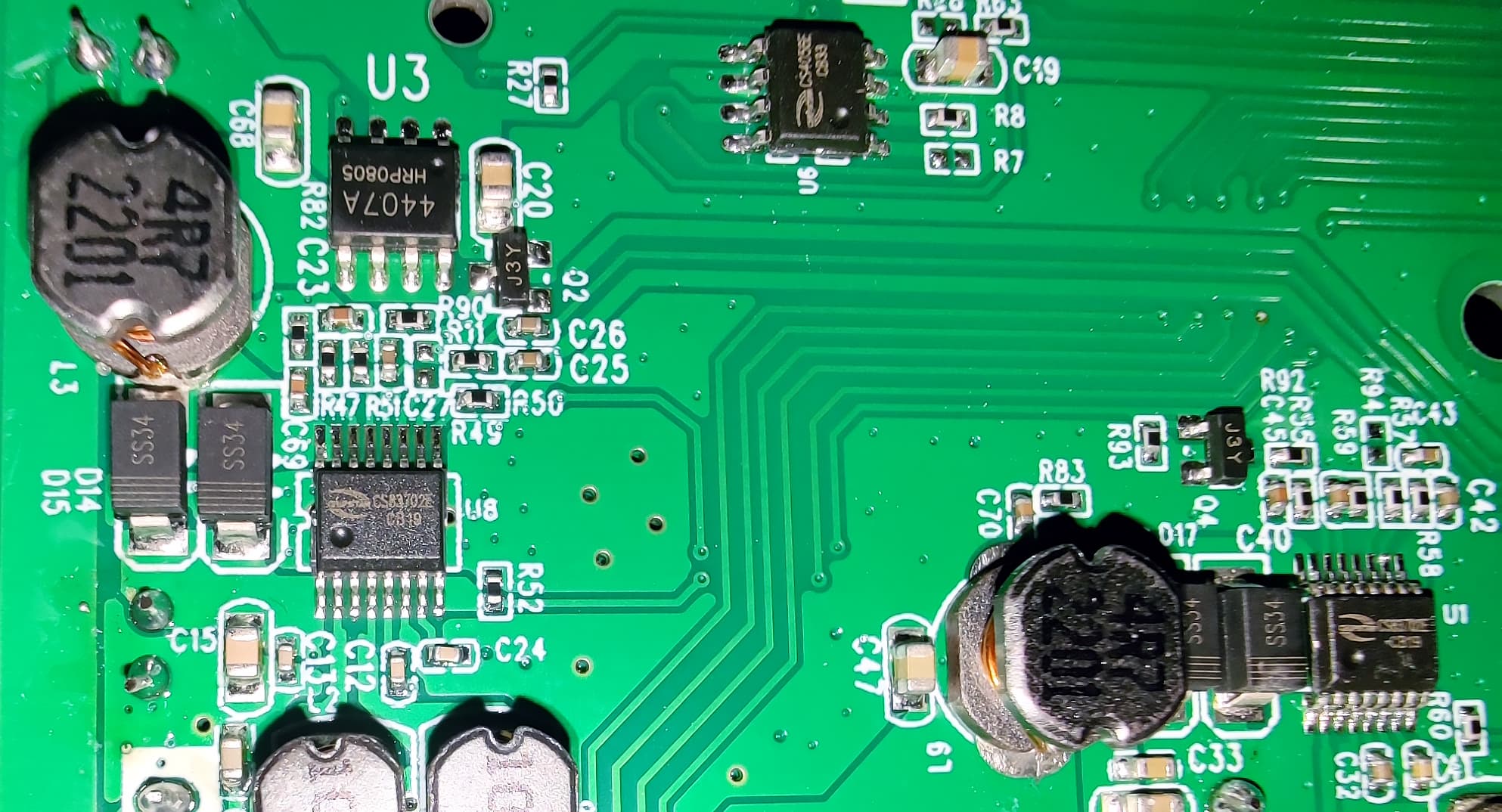 Усиление построено на паре микросхем Chipstar CS83702E все того же производителя. В документации не указана выходная мощность в монорежиме при взаимодействии с четырехомными динамиками, но прочие данные позволяют предположить, что заявленные 20 Вт на канал вполне достижимы.