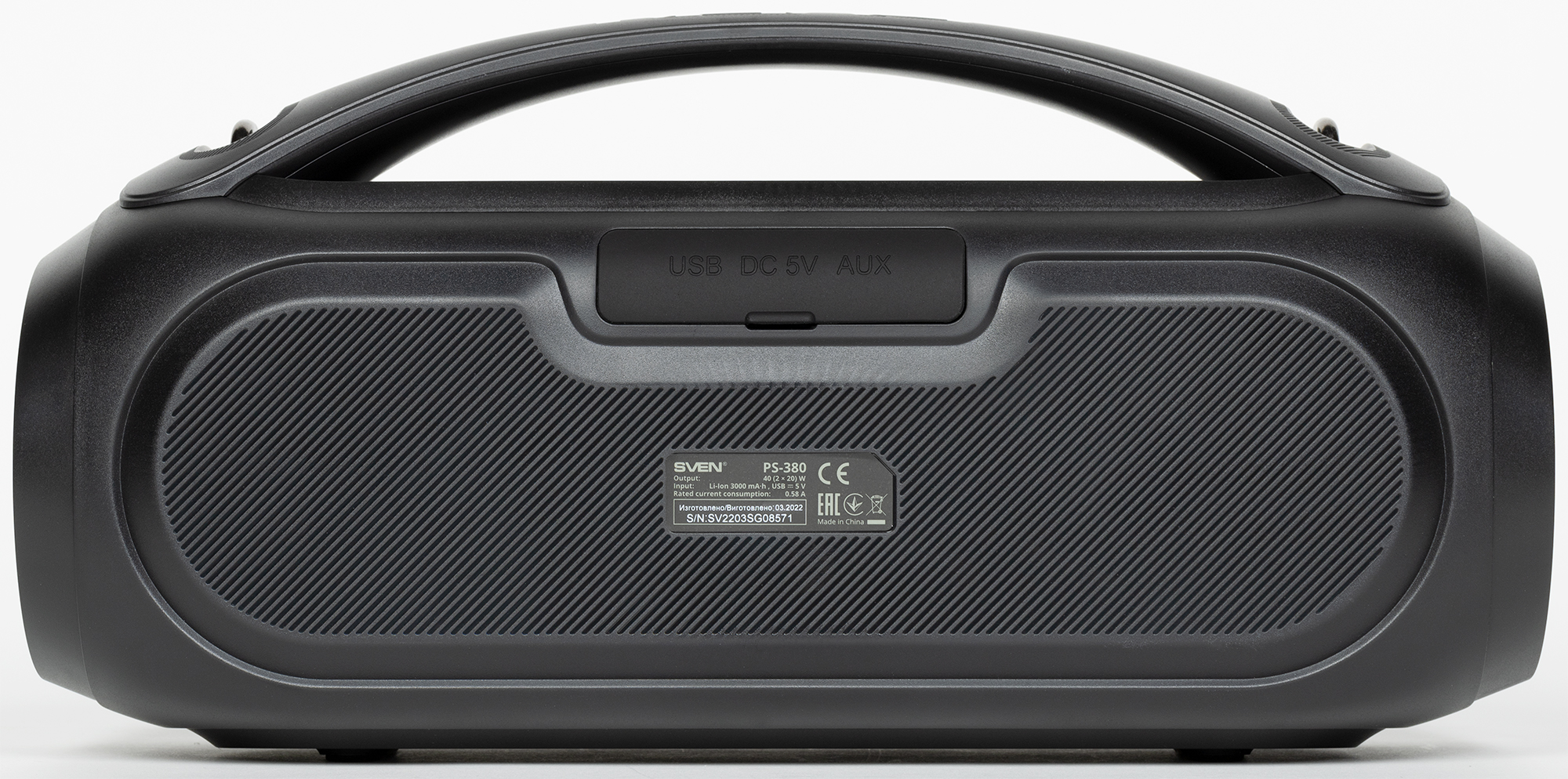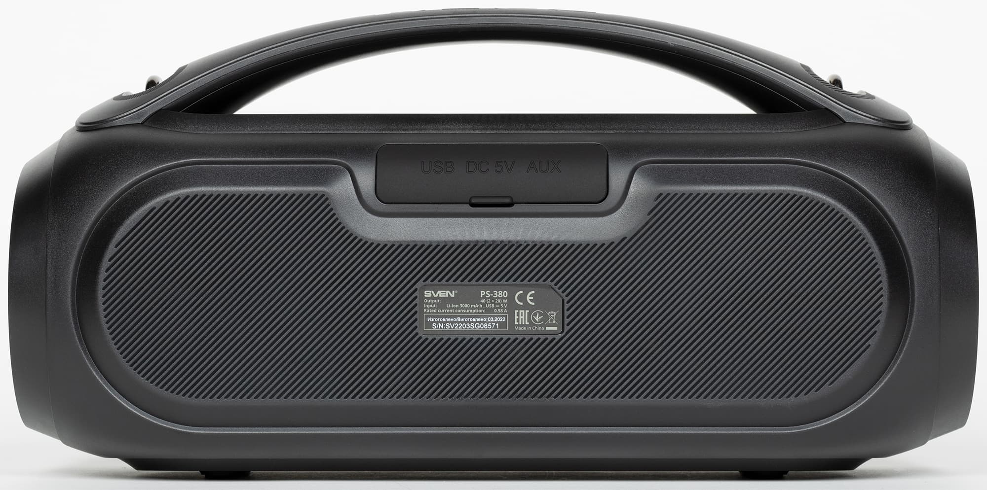 Звук при этом вполне приемлемый, если брать в расчет пластиковый корпус и небольшие размеры. Основная сфера использования Sven PS-380 — пикники на свежем воздухе, дача, небольшие вылазки в лес… Там возможностей акустики будет вполне достаточно. Ну и следует помнить, что колонка сравнительно бюджетная, ряд нюансов в ее работе и конструкции вполне компенсируется невысокой ценой. В общем, если есть желание заполучить недорогую акустику среднего размера для вылазок на природу — Sven PS-380 вполне можно рассматривать как очень неплохой вариант.