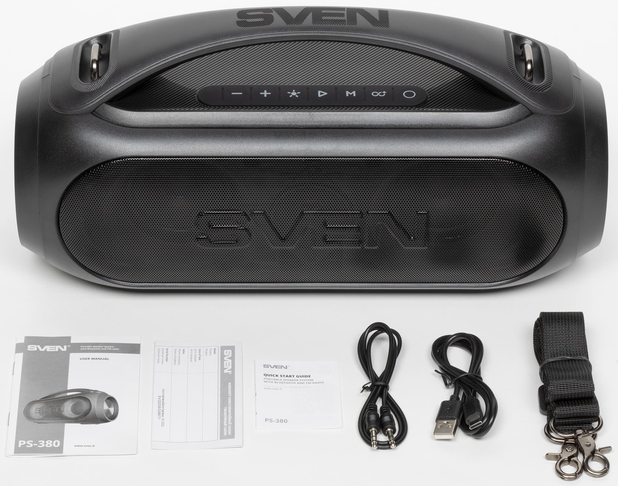 Акустика Sven PS-380 сравнительно компактна, оснащена ручкой и ремнем для переноски, имеет несколько вариантов подключения к источнику и возможность работы в автономном режиме. А также обладает целым рядом приятных опций — от подсветки до защиты от воды IPХ5. В общем, колонка рассчитана на то, чтобы стать постоянным компаньоном в самых разных ситуациях — и на небольшой вечеринке, и на отдыхе где-нибудь на берегу водоема. Потенциально устройство очень интересное, да к тому же еще и далеко не самое дорогое, что немаловажно. Осталось посмотреть, как оно покажет себя в работе.