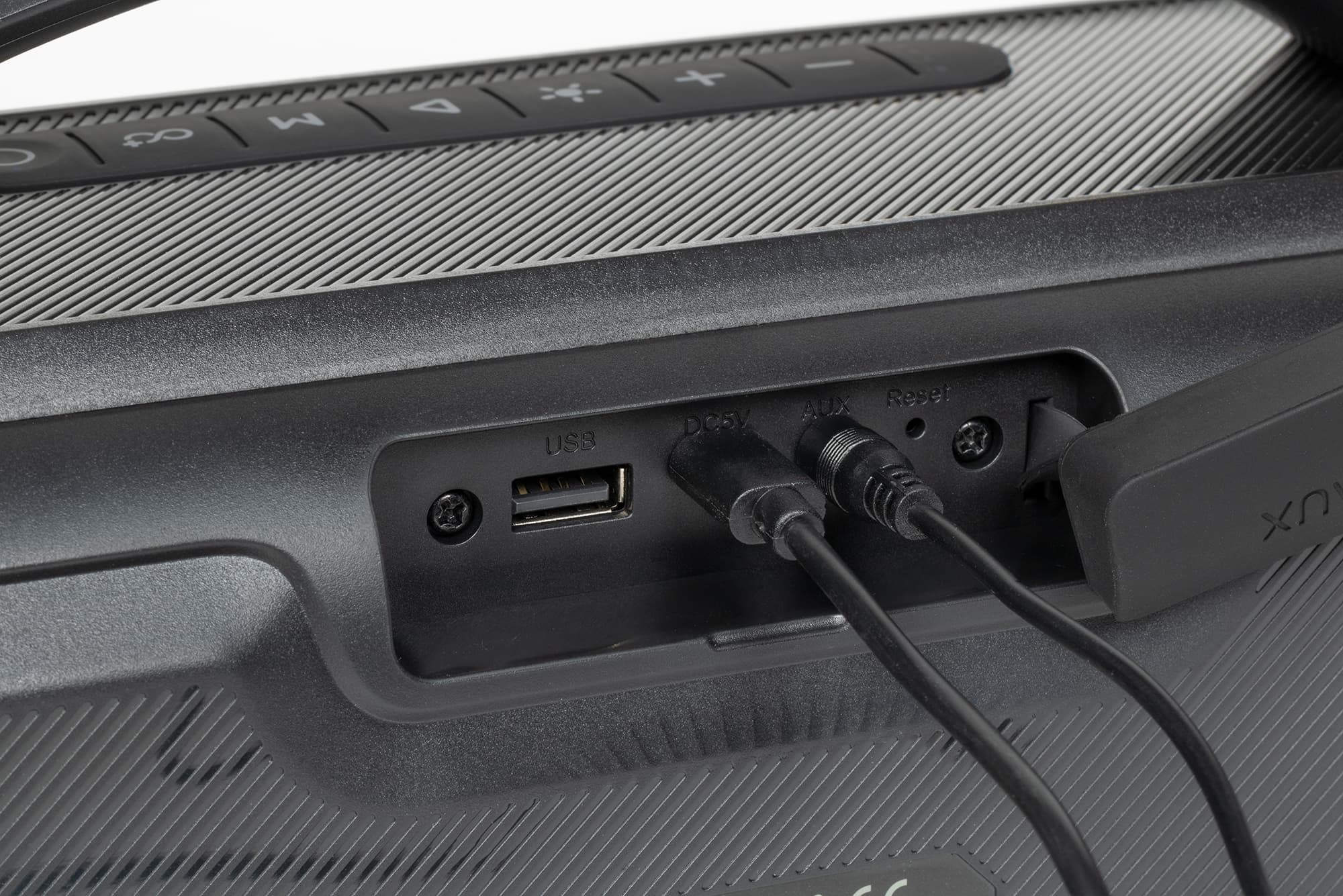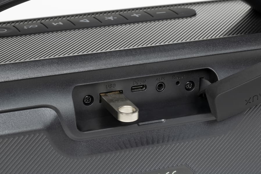 Первый — это USB, он служит для подключения флеш-накопителя с аудиофайлами (FAT32, емкость до 32 ГБ). Соответствующий режим активируется автоматически при присоединении накопителя или с помощью панели управления. Помимо MP3 встроенный плеер способен воспроизводить FLAC, WAV, WMA и APE. Внутрь вложенных папок он проходить умеет, но в силу отсутствия какой-либо индикации воспроизведения логичнее хранить все файлы в корне накопителя.
