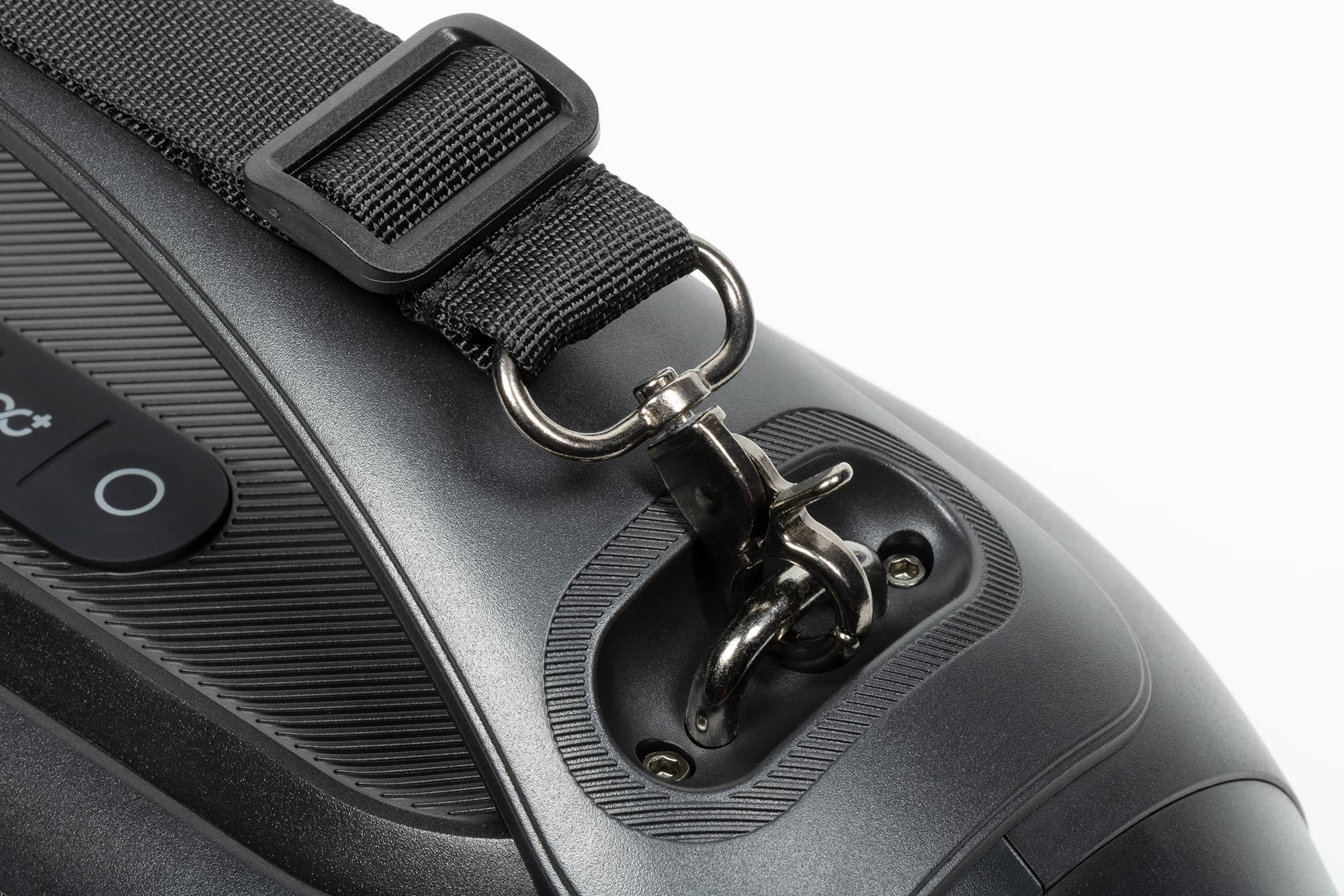 Ремень выполнен на хорошем уровне качества. Длина может регулироваться: минимальная — 70 см, максимальная — 130 см. Немного не хватает мягкого элемента для более комфортного размещения на плече. Но, учитывая небольшую массу устройства, без него вполне можно обойтись.