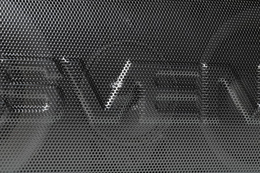 На решетку нанесено название производителя. С отключенной подсветкой устройство смотрится вполне лаконично, так как количество декоративных элементов сведено к минимуму. Но стоит ее включить, как устройство буквально преображается.