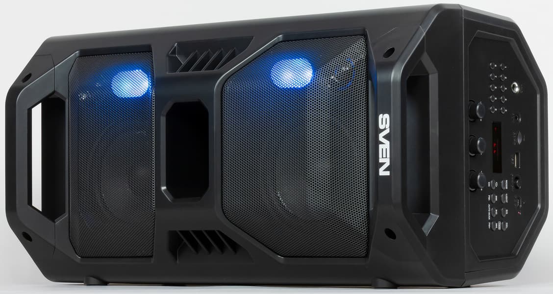 С портативной акустикой Sven в переживающем сейчас новый расцвет формате «бумбокса» мы уже знакомы. Все устройства этой серии отличаются громким звуком и массой дополнительных функций — начиная от динамической подсветки и заканчивая караоке. Но сегодня мы поговорим об одном из «самых-самых» бумбоксов Sven: самом громком, с самым емким аккумулятором, возможностью подключения двух устройств к одному источнику и так далее.