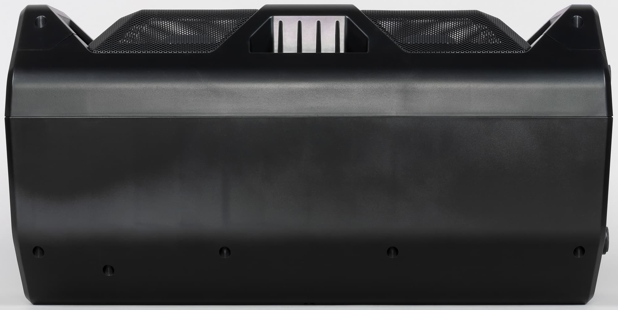 Габариты и вес колонки по-прежнему позволяют смело называть ее портативной, но для своего класса она достаточно велика. Потому ремня для переноски как у моделей «помладше» здесь уже нет — носить колонку таких габаритов на нем будет уже не очень комфортно. Для переноски предусмотрены две ручки.