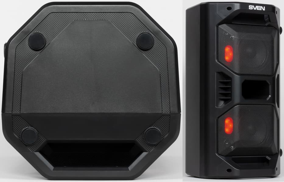 Что касается громкости, то по уровню заявленной мощности это одно из самых «продвинутых» решений на рынке в целом. Конечно, есть портативные устройства и помощнее, но у них есть пара весьма ощутимых минусов. Во-первых, вес — портативными многие из них называются только в силу того, что одному человеку под силу поднять их и донести до машины. Ну и во-вторых, цена. Если Sven PS-600 мы можем смело назвать бюджетным решением, то его «коллеги по мощности» стоят ощутимо дороже.