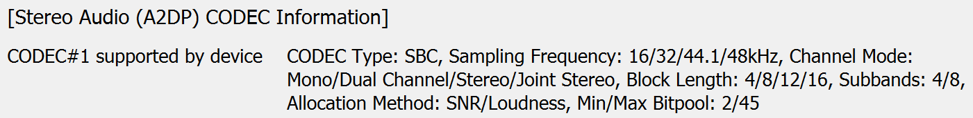 Кодек всего один — SBC. В данном случае его возможностей вполне достаточно, однако стоит отметить: максимум параметра Bitpool ограничен на уровне 45, тогда как профиль High Quality предполагает значение 51. С известной долей оптимизма мы обычно трактуем такое занижение как заботу о стабильности соединения, но здесь этот аргумент явно не работает — при использовании в помещении с ней почти не возникает проблем. Но в целом, конечно, ничего критичного: для фоновой музыки, подкастов или аудиокниг беспроводное соединение можно смело использовать.