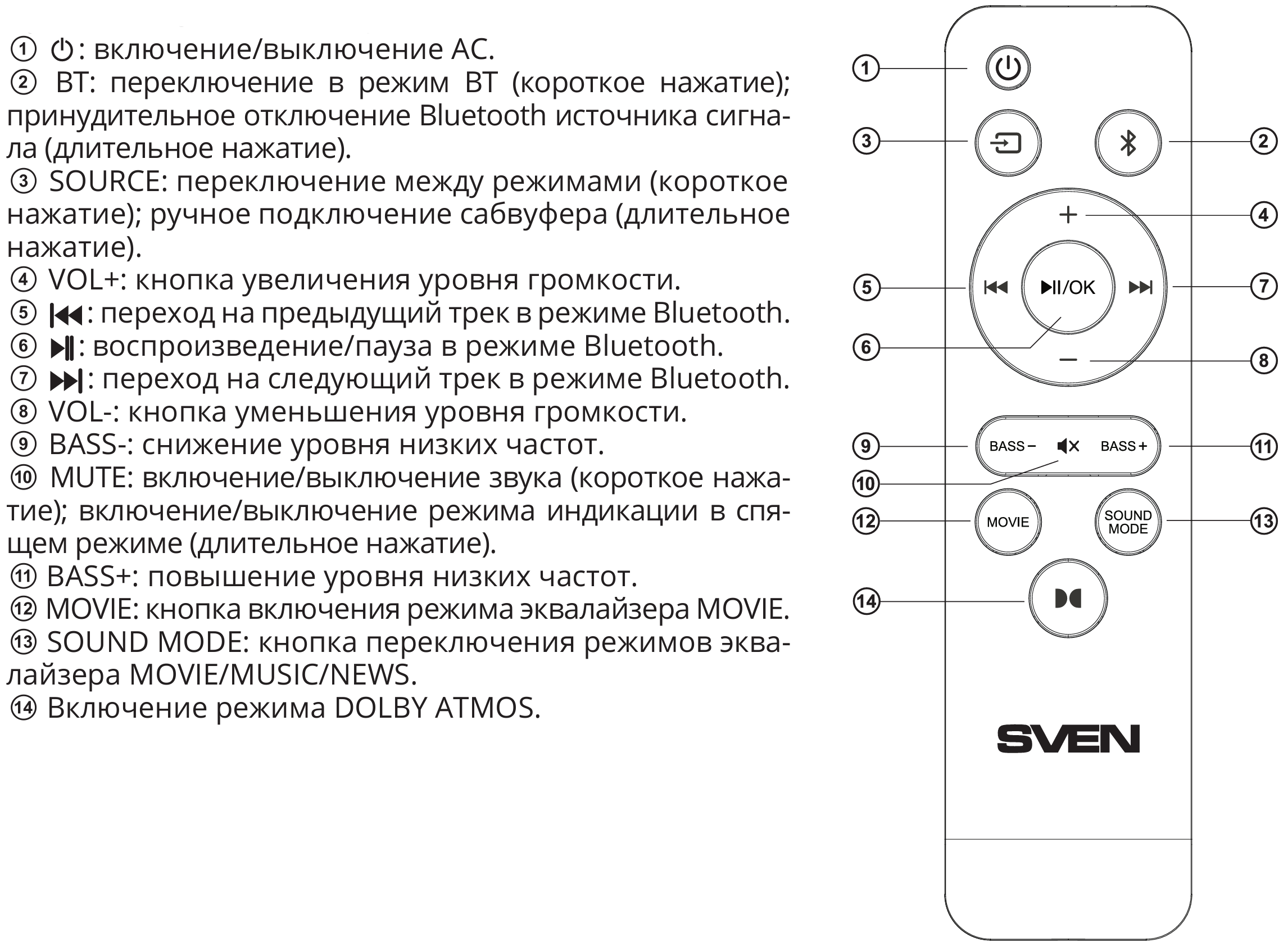 Как можно заметить, у Sven SB-2700DA есть режим Dolby Atmos, в котором система самостоятельно раскладывает сигнал на несколько каналов для создания «виртуального объема». Работает эта функция примерно так же, как у других устройств подобного уровня: местами эффектно, но в целом спорно — с полноценным Dolby Atmos ее не перепутаешь. В музыке такая обработка скорее избыточна, в фильмах лучше просто выбирать многоканальную дорожку, а вот при просмотре спортивных трансляций иногда получается довольно любопытный эффект.