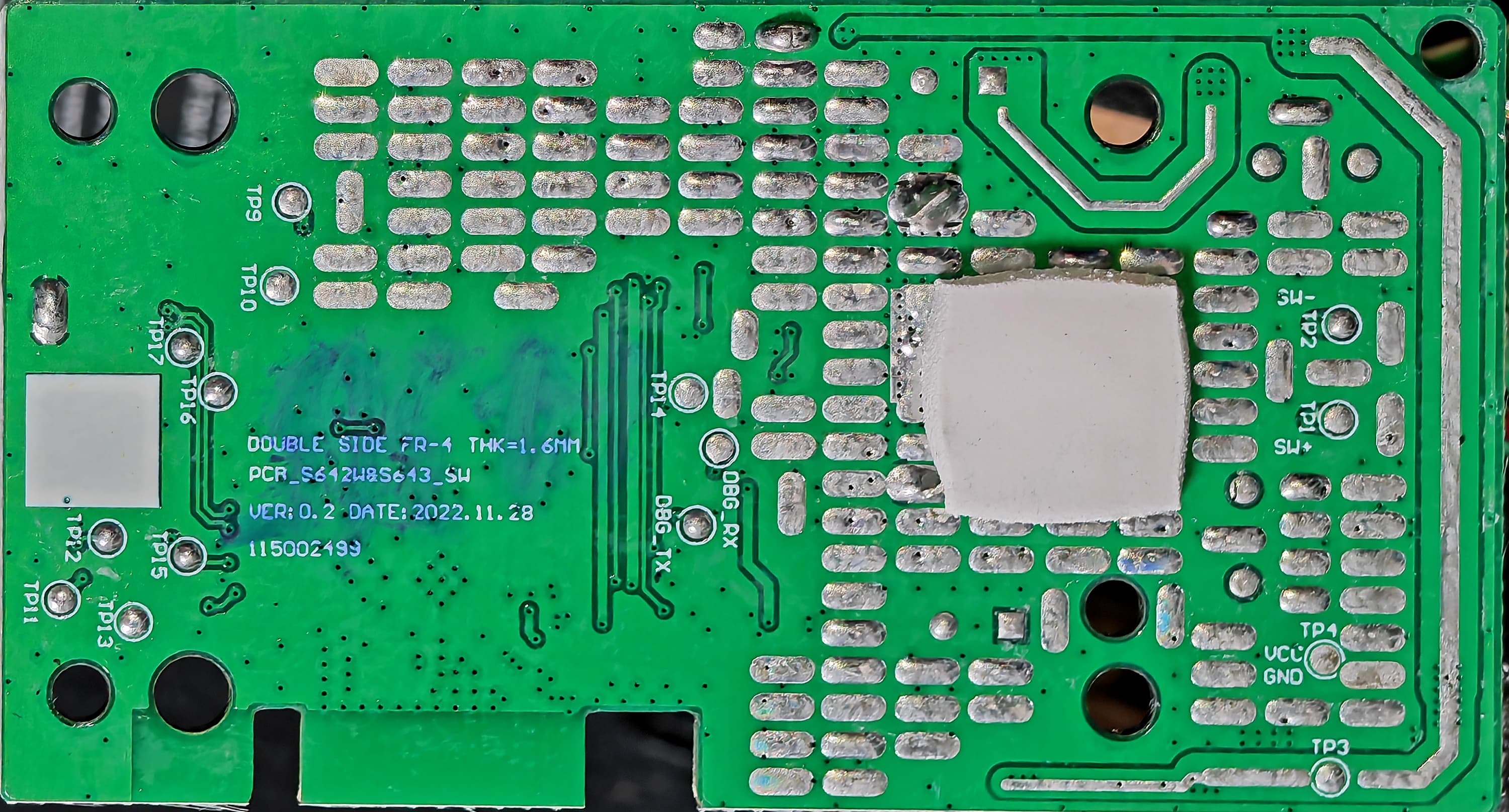На задней стороне платы в месте установки микросхемы усилителя размещена термопрокладка, контактирующая с небольшой металлической пластиной внутри крепления платы для дополнительного рассеивания тепла.
