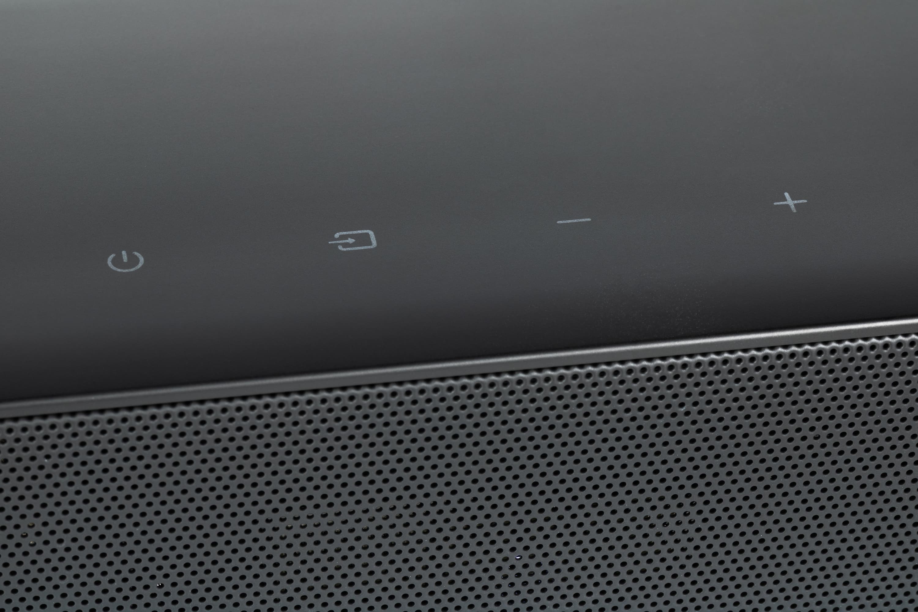 Большая часть корпуса саундбара покрыта матовым пластиком: он приятен на ощупь, устойчив к загрязнениям и легко очищается.