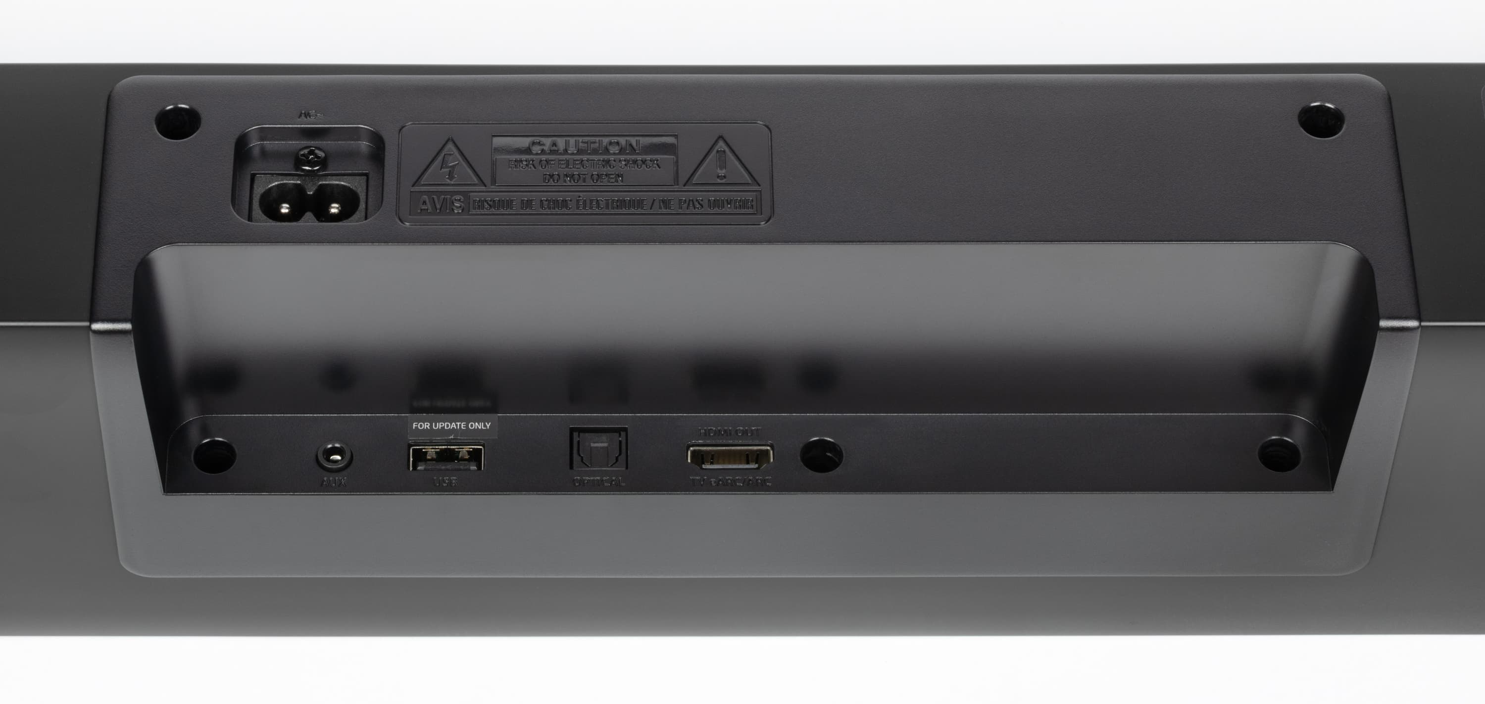 На дне устройства находятся выемка для коннекторов подключенных кабелей, а также небольшие резиновые ножки, которые обеспечивают устойчивое положение саундбара на горизонтальной поверхности.