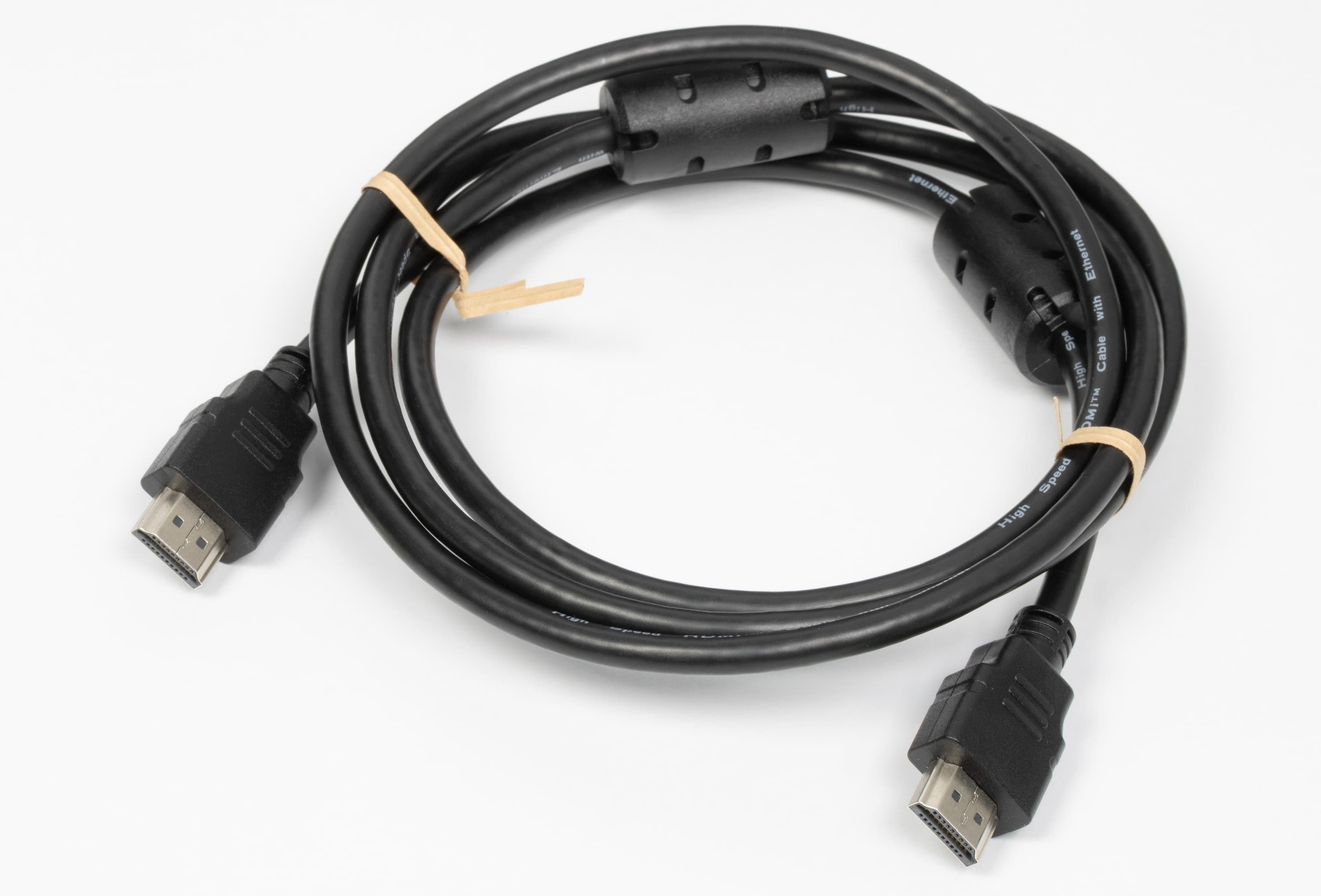 HDMI-кабель тоже длиной 1,5 метра — обычно этого достаточно, поскольку саундбар размещается рядом с телевизором. Коннекторы полноразмерные, на обоих концах размещены ферритовые фильтры. В целом, самый обычный кабель без изысков, но со своей задачей справляется уверенно.