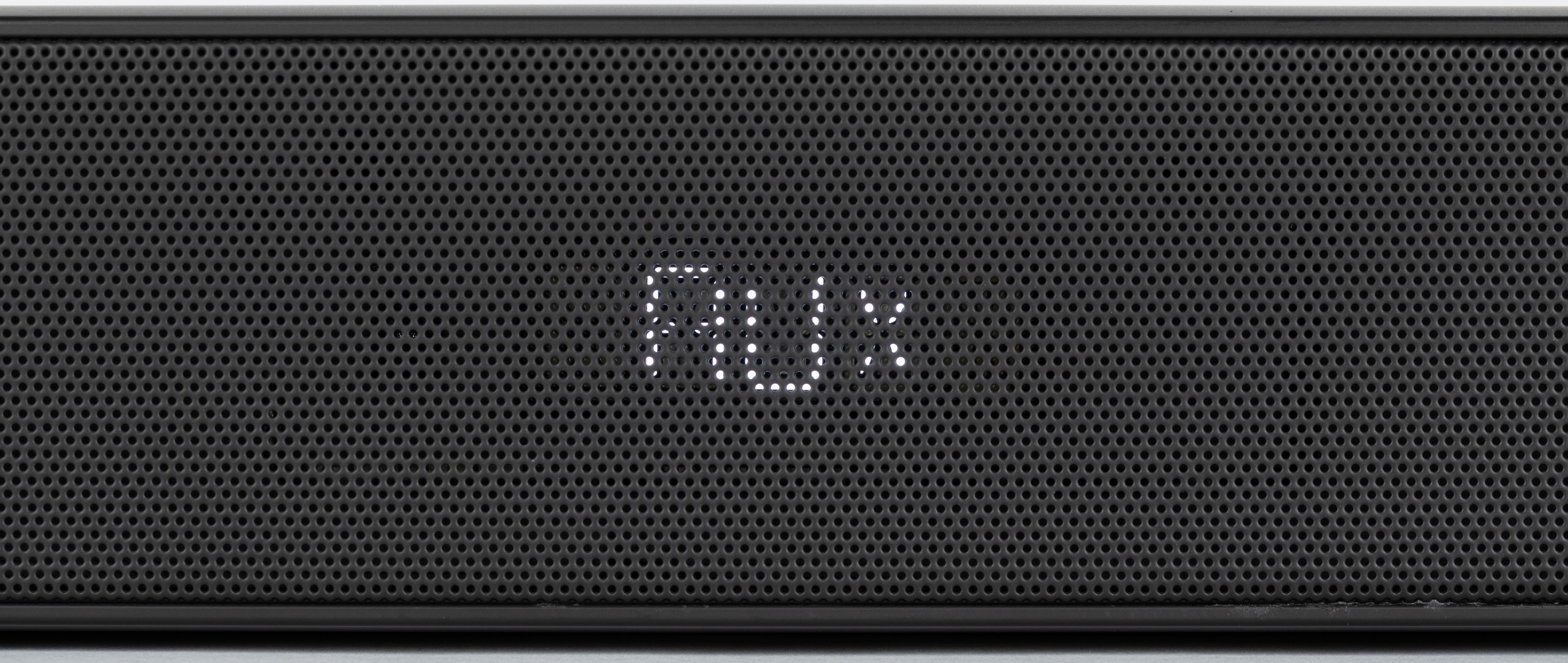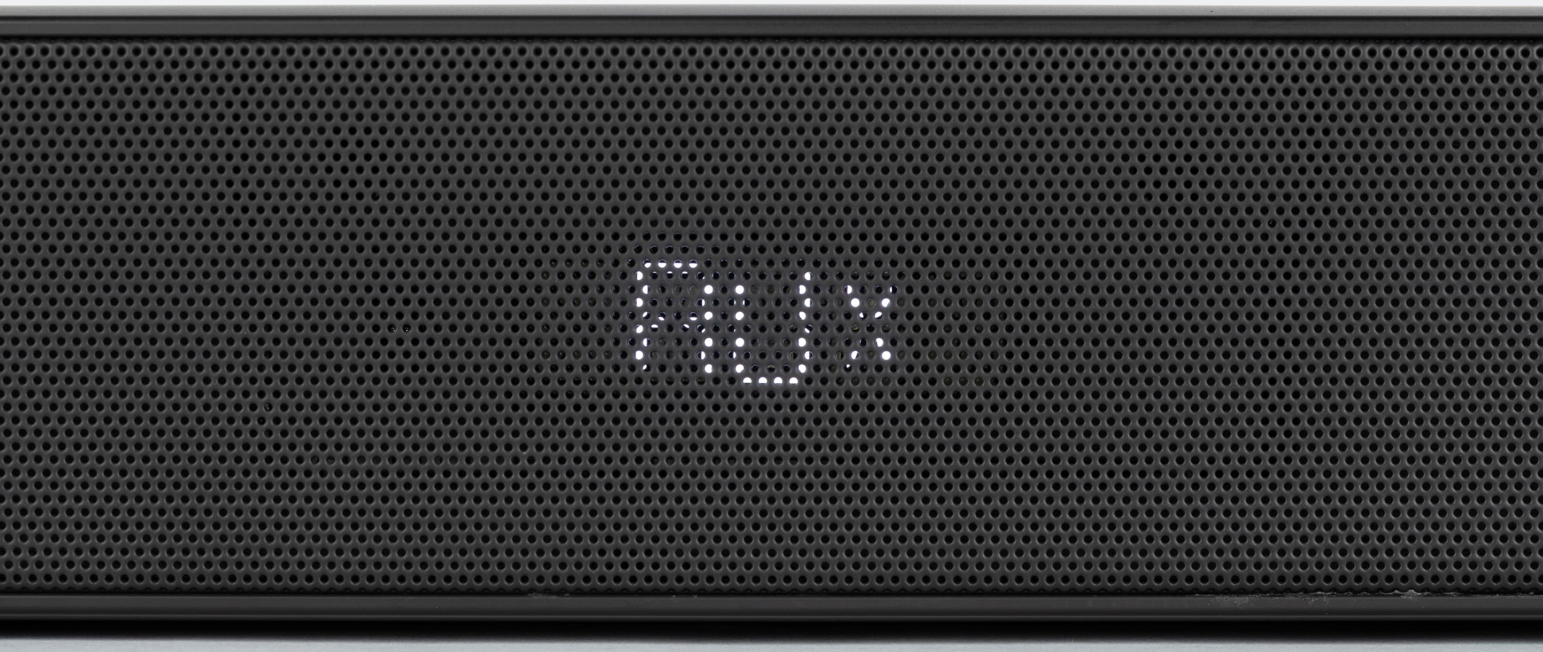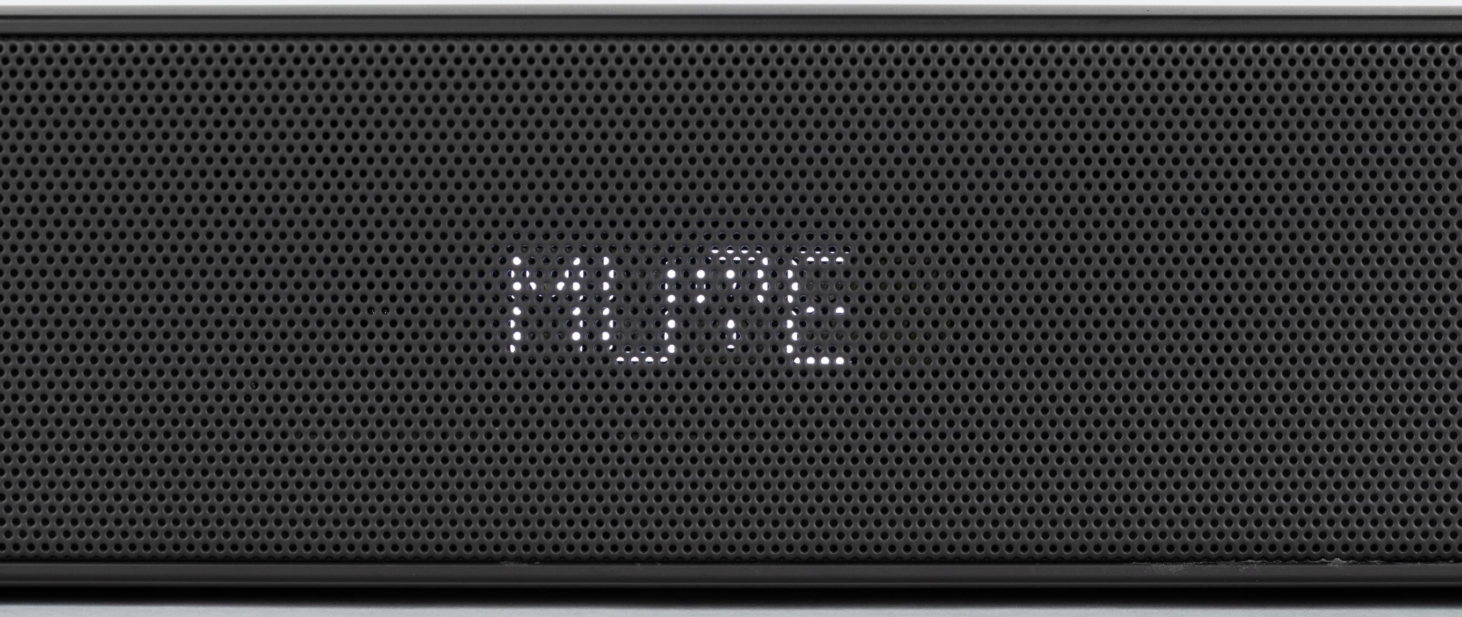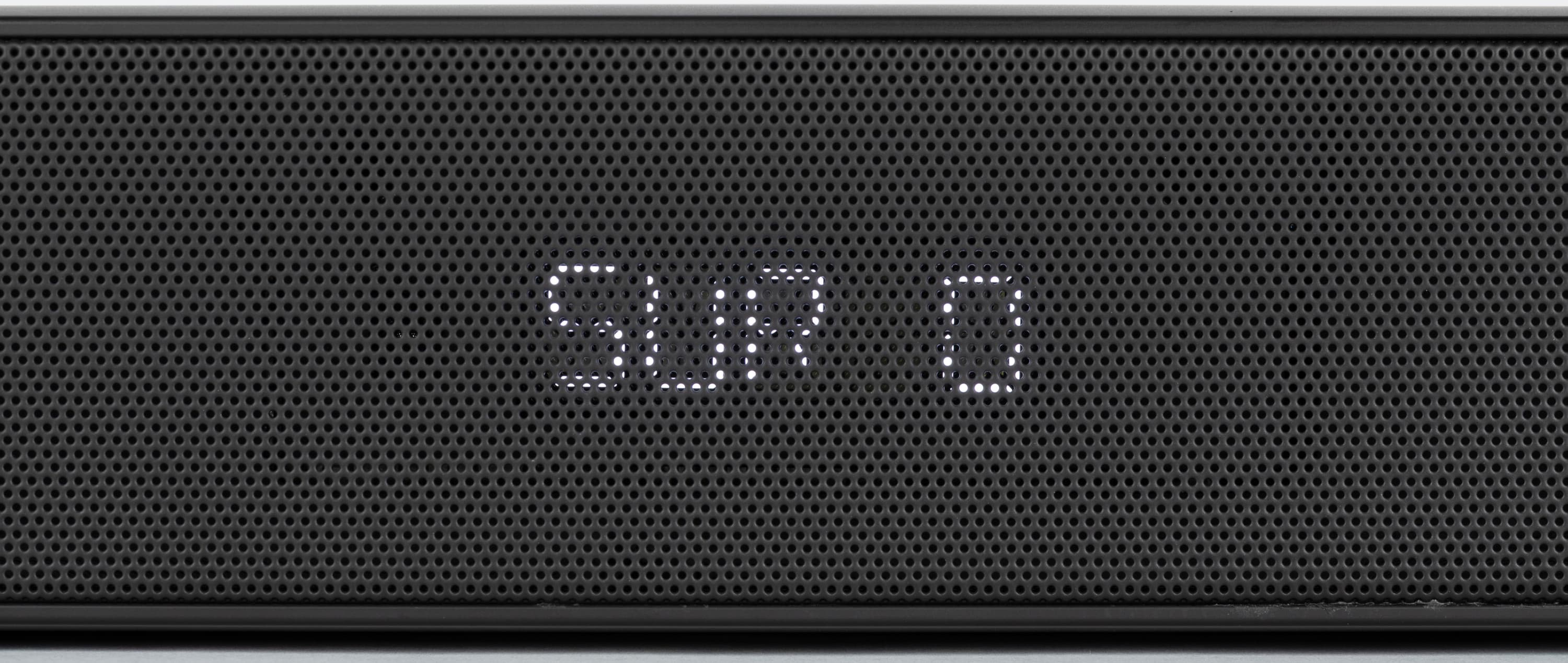 Саундбар довольно компактный: 1000×66×96 мм. При этом корпус заметно вытянут в длину, что логично — семь динамиков нужно где-то разместить. Заодно фронтальные можно развести чуть дальше друг от друга, что положительно сказывается на стереоэффекте. Передняя панель полностью закрыта металлической сеткой, за которой расположен дисплей из пяти индикаторов с 14 сегментами — побольше, чем у упомянутых во введении бюджетных моделей. Во время работы саундбара дисплей автоматически отключается и не отвлекает от просмотра ТВ.