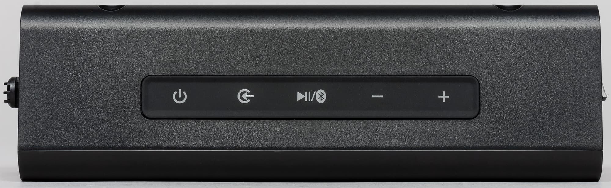 Верхнюю поверхность занимает блок управления системой, включающий кнопки питания, выбора источника, воспроизведения/паузы и управления Bluetooth, а также изменения громкости.