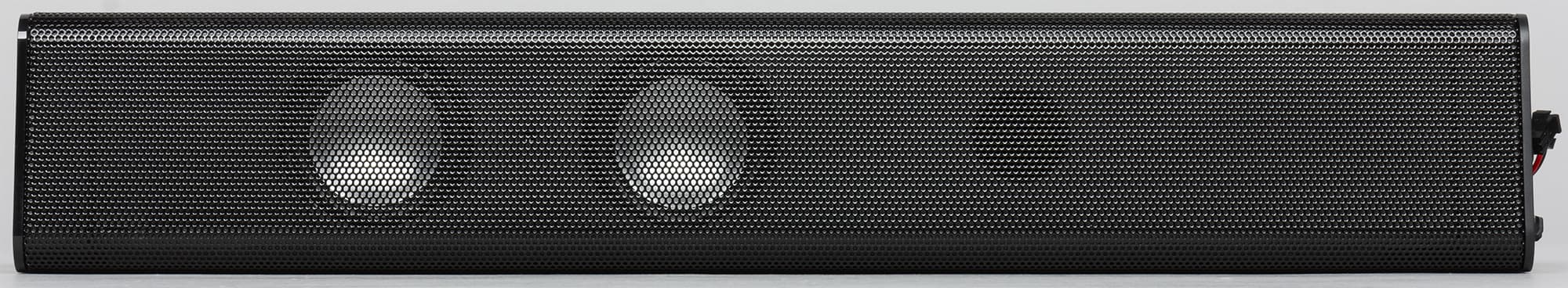 Корпус саундбара выполнен из пластика, динамики закрыты металлической сеткой.