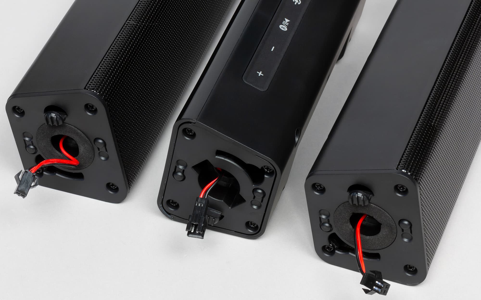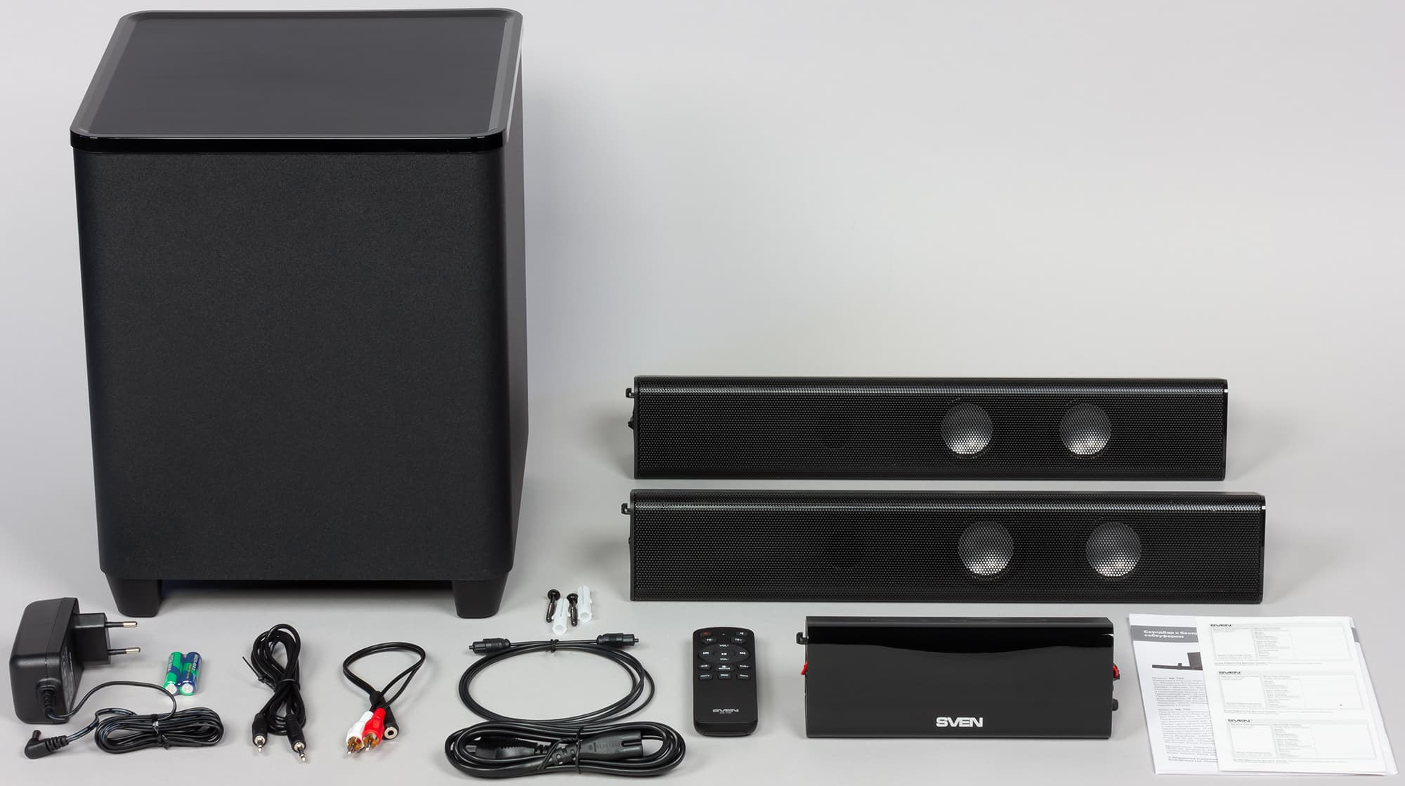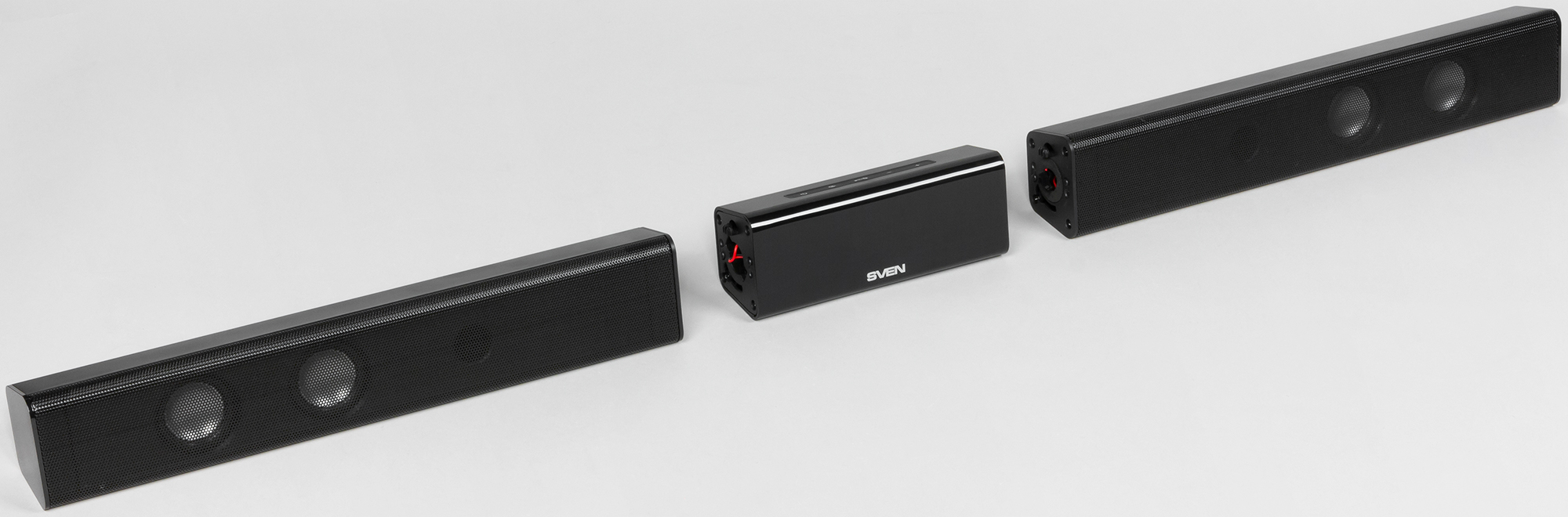 - саундбар в разобранном виде: центральный модуль и два «крыла» с динамиками