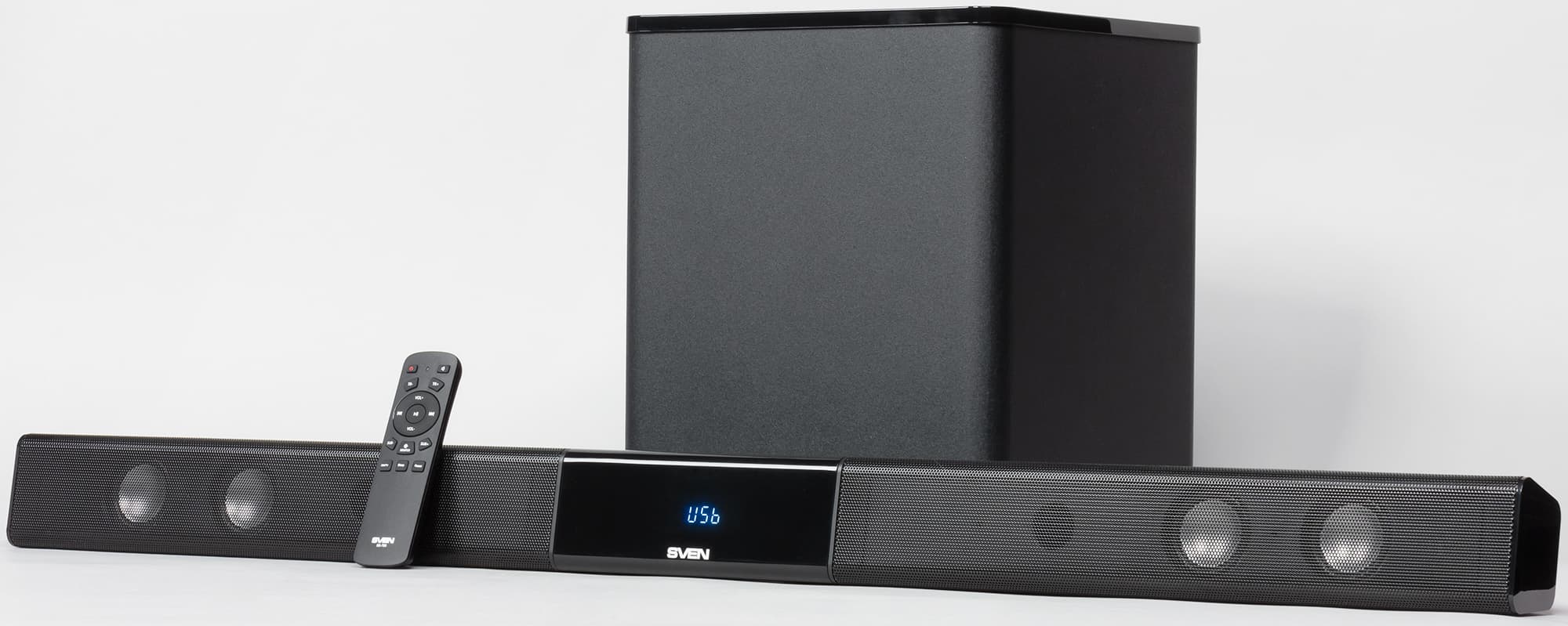 | Управление | пульт ДУ, клавиши на центральном блоке саундбара |
