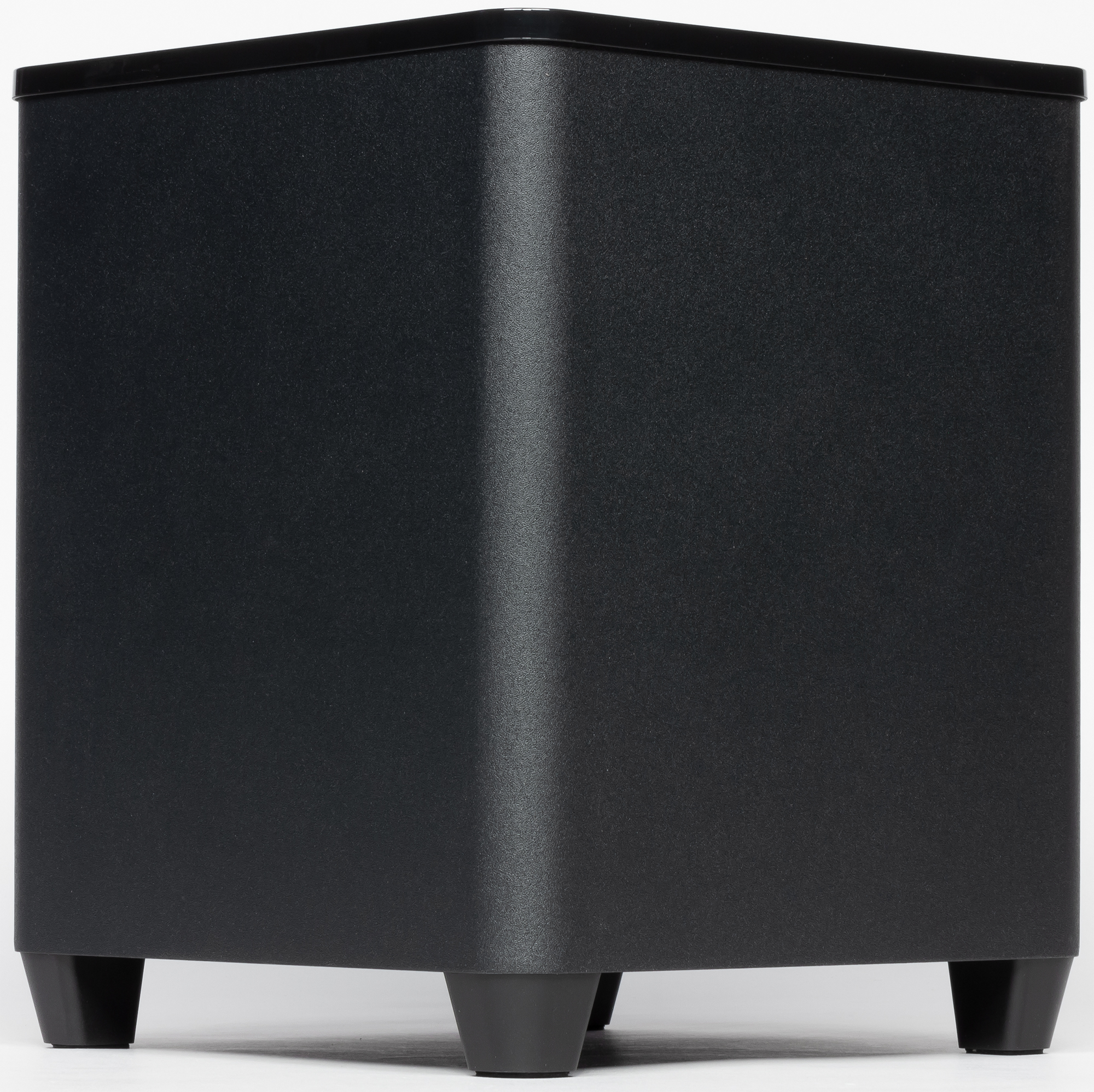 Сабвуфер сделан из MDF, выглядит очень строго и солидно: приятные матовые поверхности, никаких лишних надписей и ярких деталей. Как и саундбар, он органично впишется практически в любой интерьер, но при этом не будет привлекать к себе слишком много внимания.