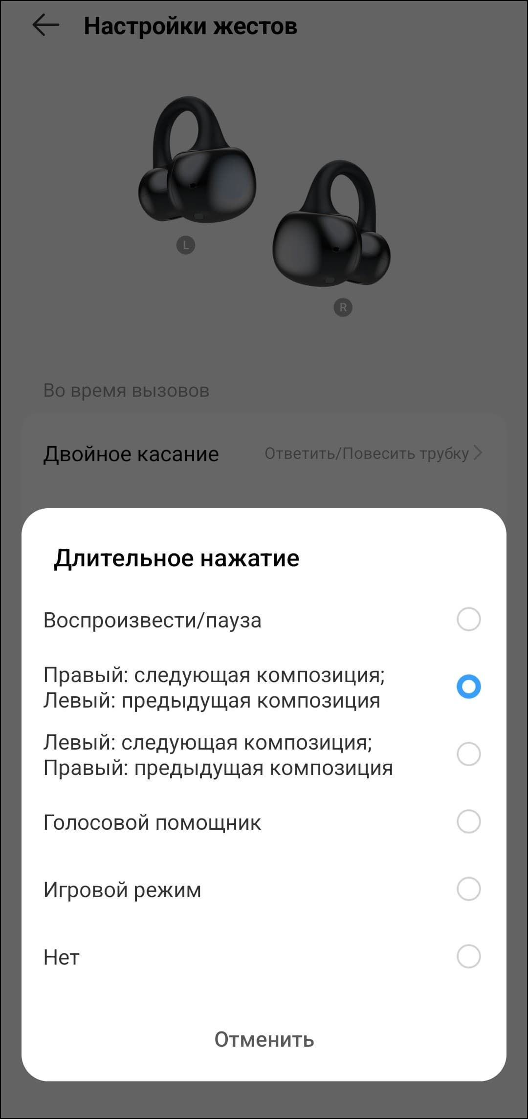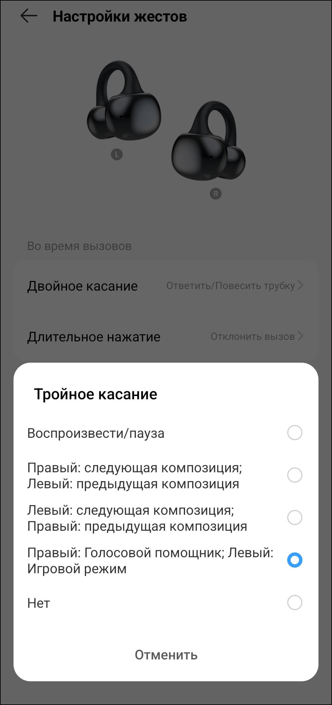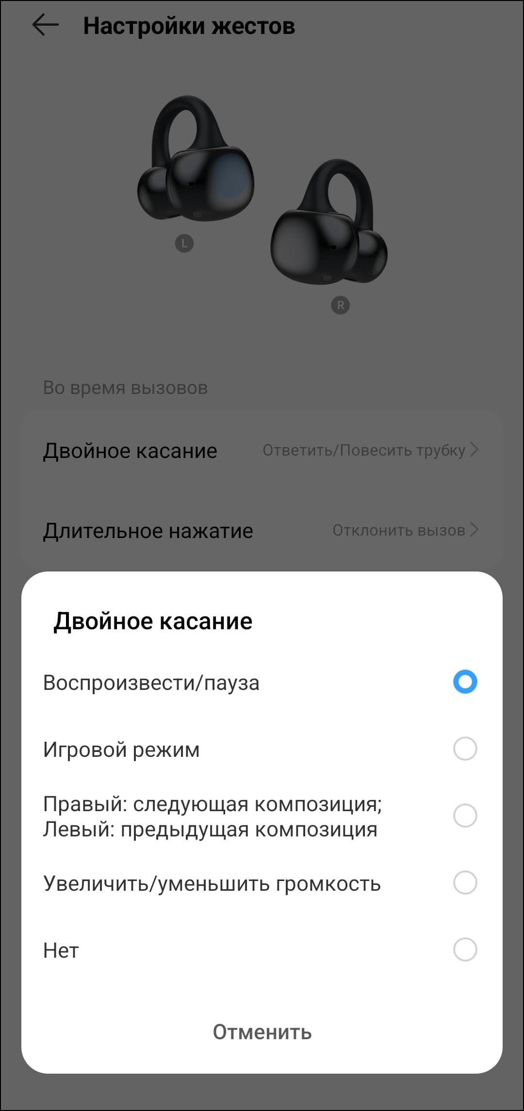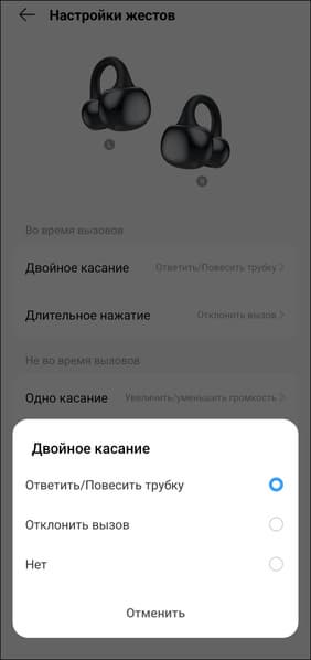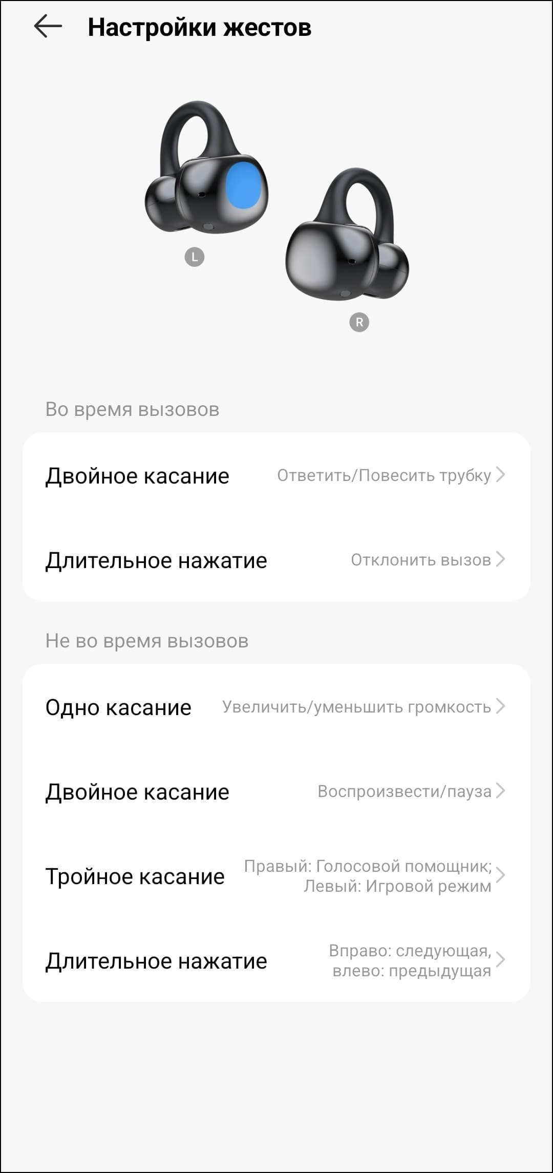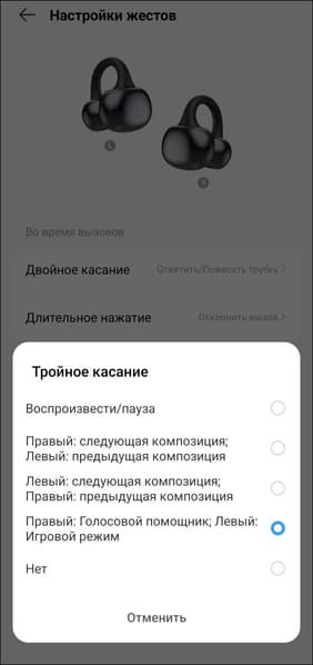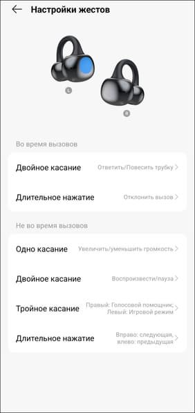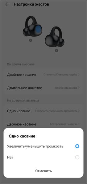 Регулировка громкости предусмотрена и по умолчанию осуществляется одинарным касанием — вполне удобно, правда в таком случае управление воспроизведением смещается на двойное, а перелистывание — так и вовсе на тройное. Не лучший вариант, но требовать от бюджетной гарнитуры еще и распознавания свайпов — явный перебор.