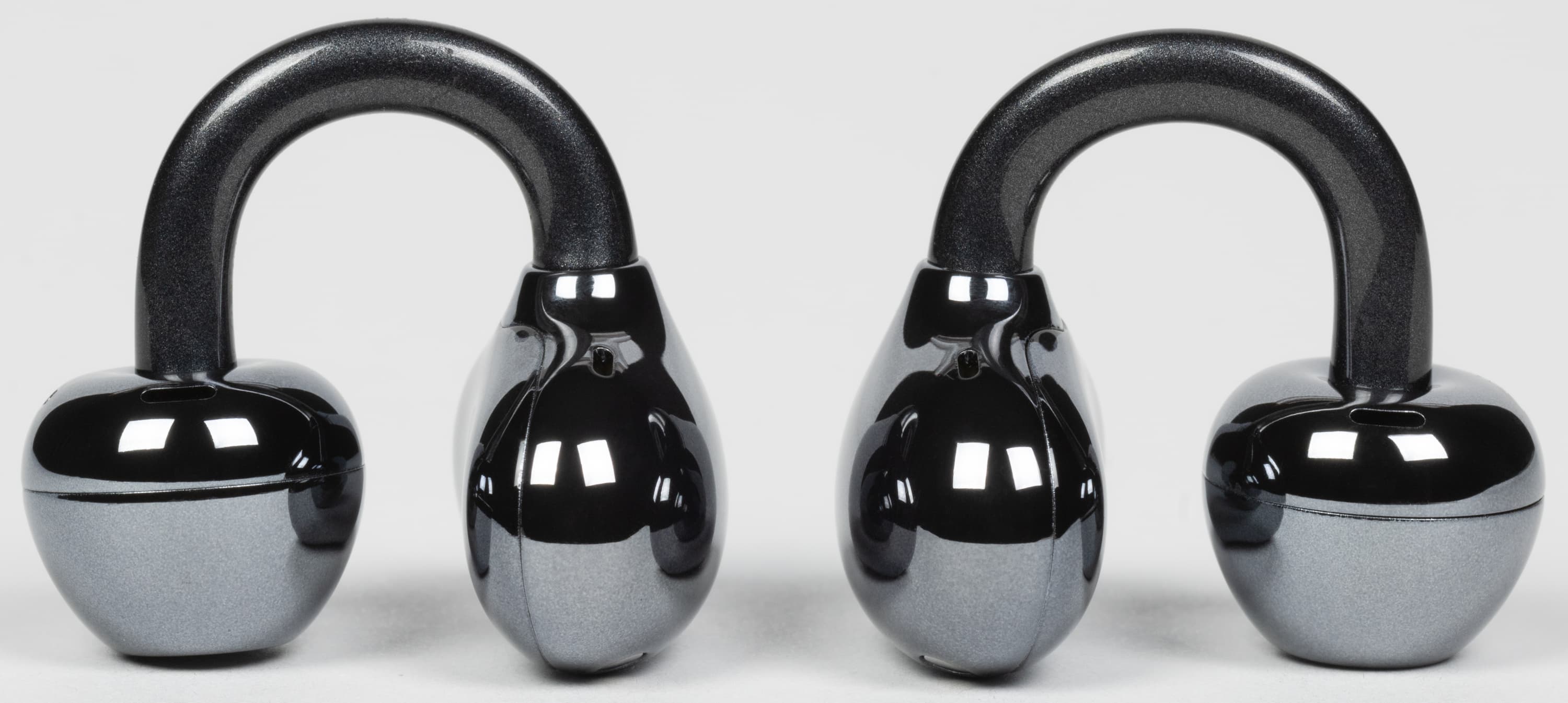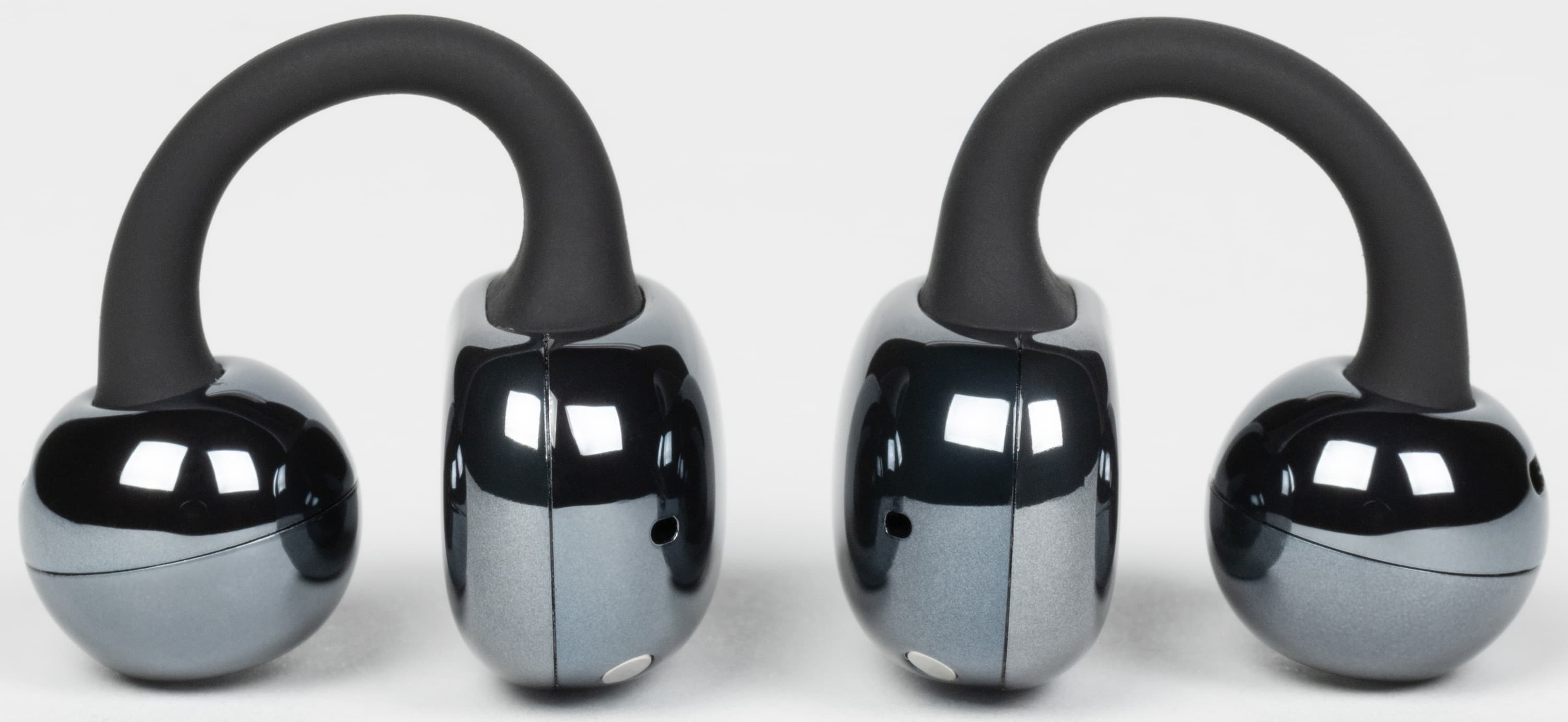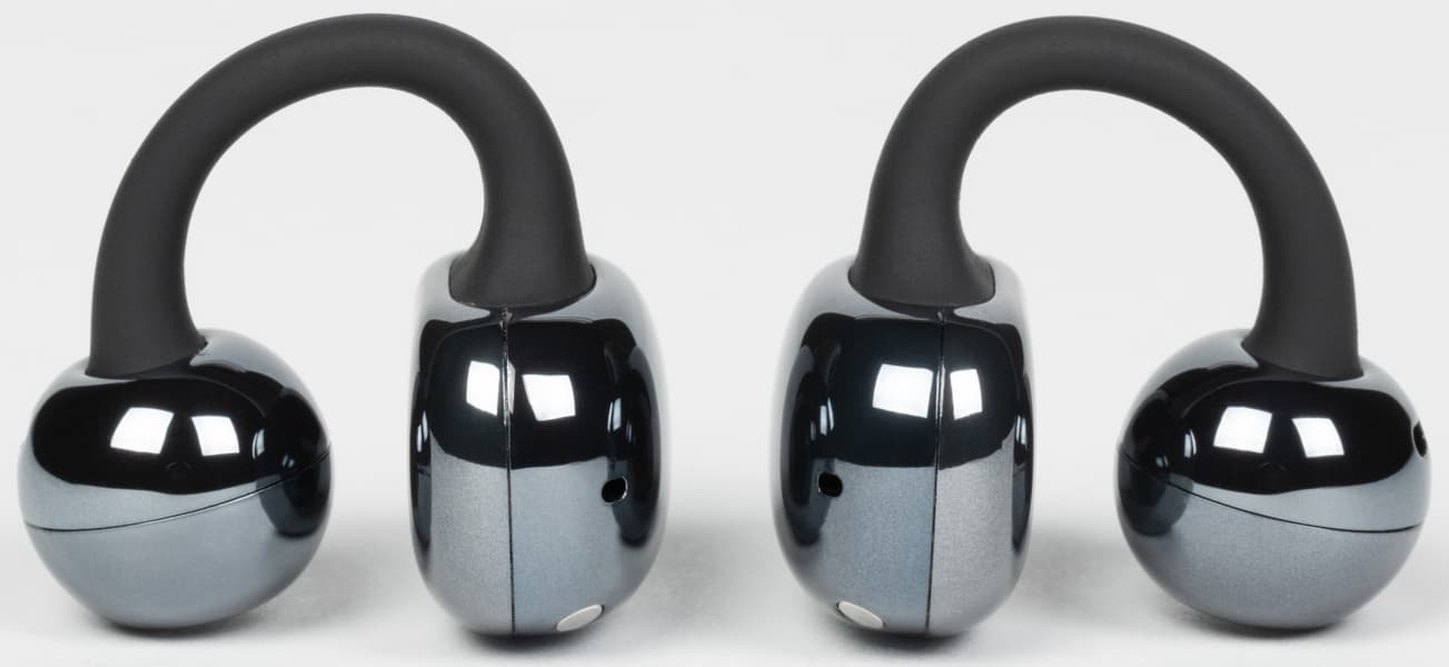 Выше мы уже отметили три на первый взгляд незначительных, но всё же важных отличия в конструкции Tecno FreeHear 1 по сравнению с другими наушниками-каффами, с которыми успели познакомиться: чуть более округлая фасолевидная часть с менее выраженной выемкой для упора, полностью сферическая форма динамического блока без сужения и заметно более упругий соединительный элемент. Казалось бы, мелочи — но именно из таких мелочей складывается разница между отличной посадкой и просто приемлемой.
