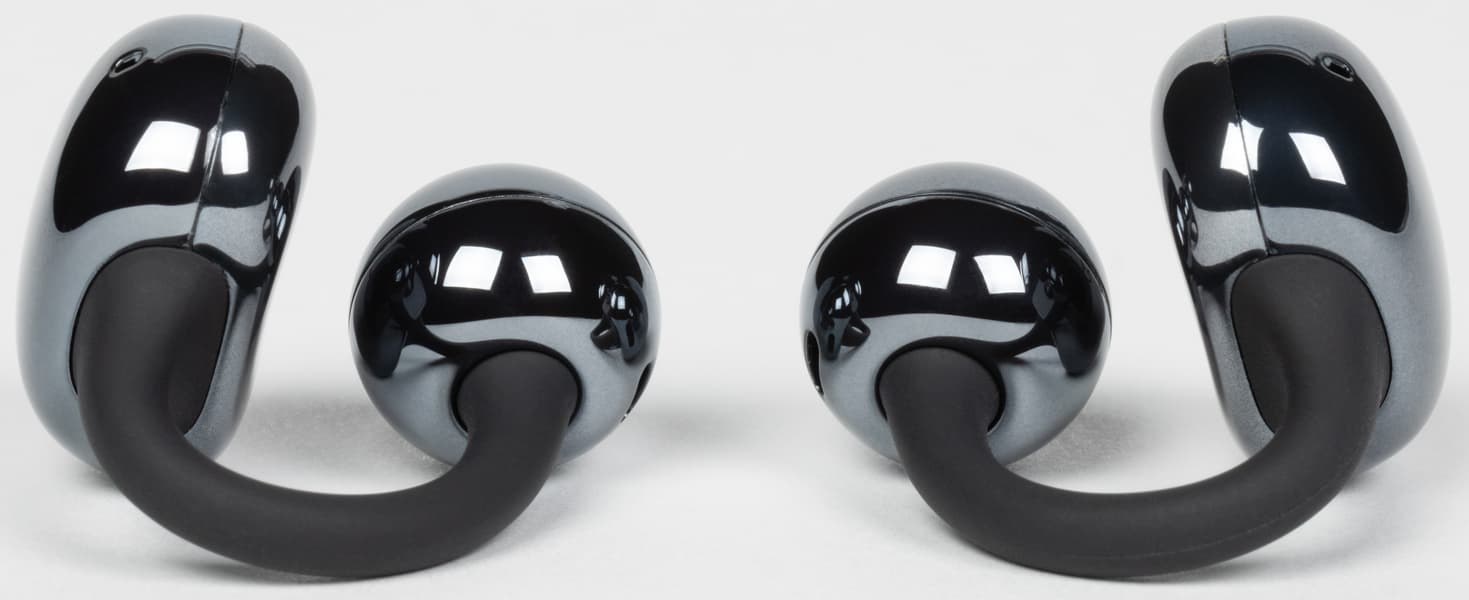 Крепление на ухе получается очень надежным и при этом комфортным — наушники можно спокойно носить пару-тройку часов без признаков усталости. При этом пользователь продолжает слышать всё происходящее вокруг него: от проезжающих мимо машин во время прогулки или пробежки до вопросов коллег в офисе. Ну и, конечно, немалую роль играет внешний вид: наушники-каффы — это практически модный аксессуар, который легко может стать заметной частью образа их владельца. В общем, устройство получается довольно оригинальным и даже «нишевым», но по-своему интересным.