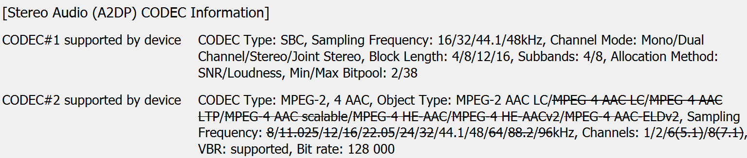 Полный список поддерживаемых кодеков и их режимов мы традиционно получили с помощью утилиты Bluetooth Tweaker.