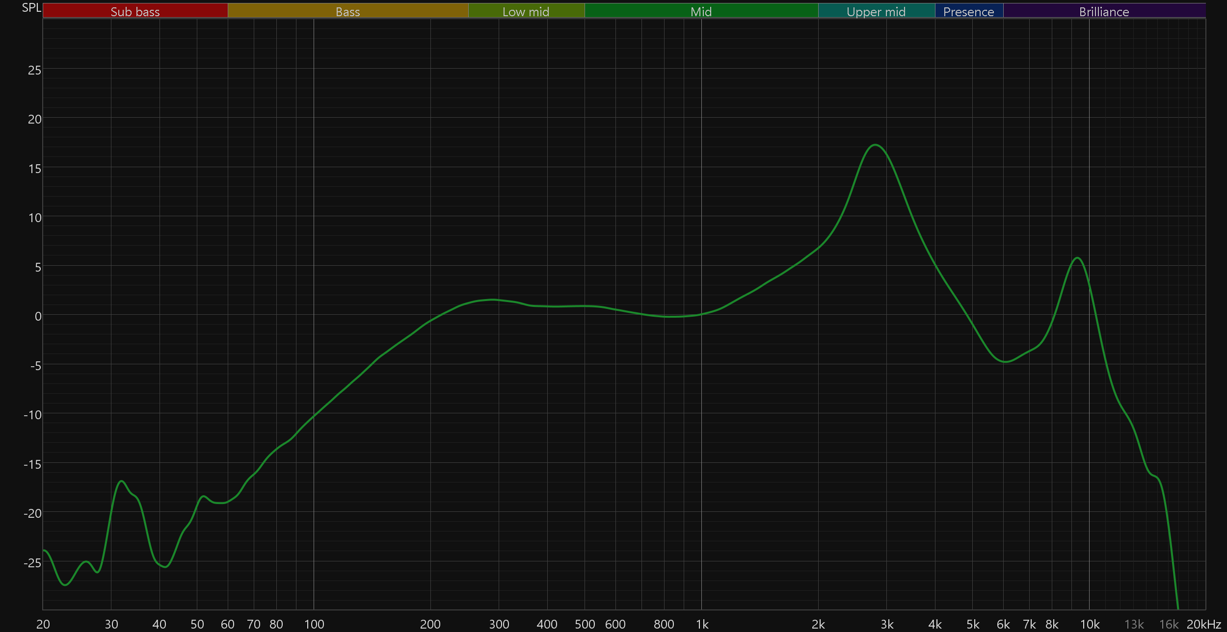 В целом все очень неплохо — довольно ровная середина, включая нижнюю ее часть, хорошо читаемые высокие — для повседневного прослушивания этого более чем достаточно. Но вот баса нет практически совсем и дело тут не столько в возможностях динамика, сколько в его размещении относительно далеко от основания слухового прохода. Для легкой пробежки под джаз — отлично, а вот для силовых под качающий звук хип-хопа — уже не очень, хотя и тут дело вкуса. Заметный пик в районе 10 кГц периодически приводит к слишком резкому звучанию высоких, но чаще все же добавляет субъективно ощущаемой детализации и воспринимается довольно органично.