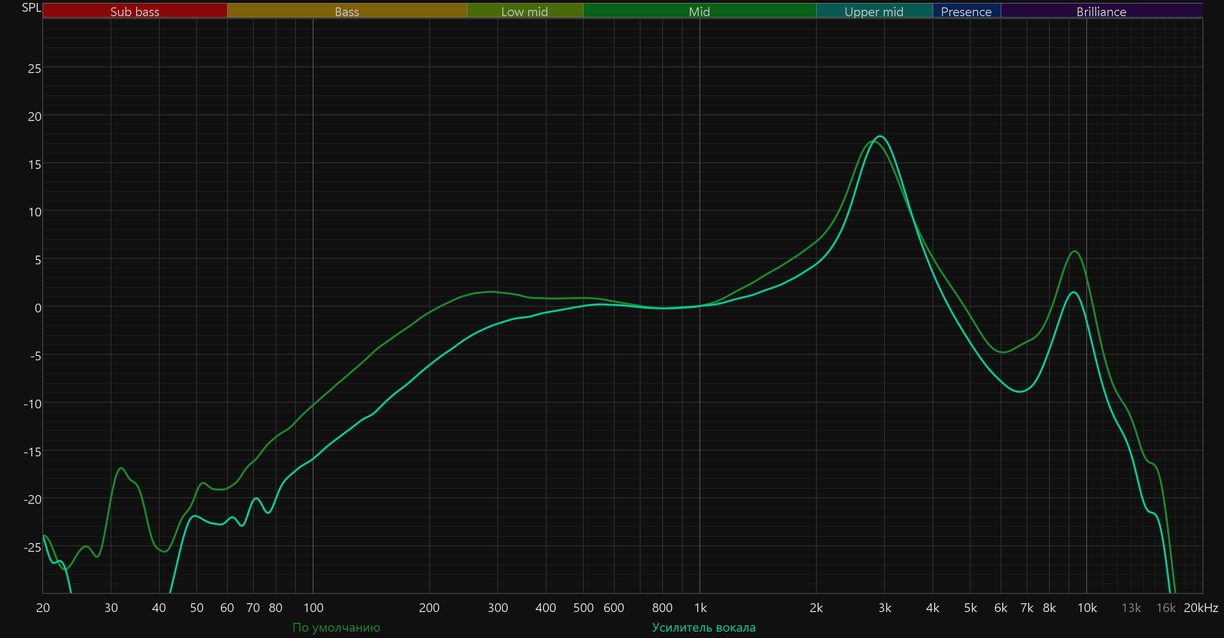 Пресеты эквалайзера делают ровно то, чего ожидаешь от них, исходя из названия — добавляют акценты на низких, средних или высоких частотах. Эффективность «очень средняя» — по-настоящему добавить баса вряд ли получится, скорее убавить — выделение ВЧ-диапазона производится во многом за счет ослабления низких частот.