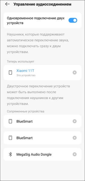 После извлечения из кейса наушники пытаются соединиться с ранее «знакомым» устройством. Если не удается, запускается режим сопряжения, также его можно активировать принудительно с помощью кнопки на кейсе. Со смартфонами Tecno поддерживается быстрое соединение, в остальных случаях придется воспользоваться стандартной процедурой. У гарнитуры есть полноценный мультипойнт, переключение между источниками происходит корректно. Этой функцией разработчики не стали жертвовать ради снижения цены, за что им отдельный респект.